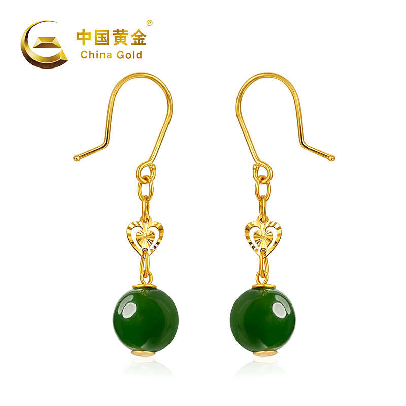 包邮-中国黄金足金镶和田碧玉耳坠ZGHJ220752 支持线下验货【新疆 西藏不发货】