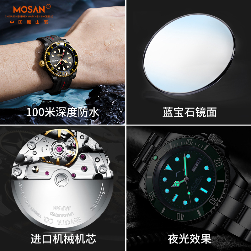 魔山表(MOSAN)正品男士经典浑水鬼机械手表防水夜光男款手表高配版MS017777