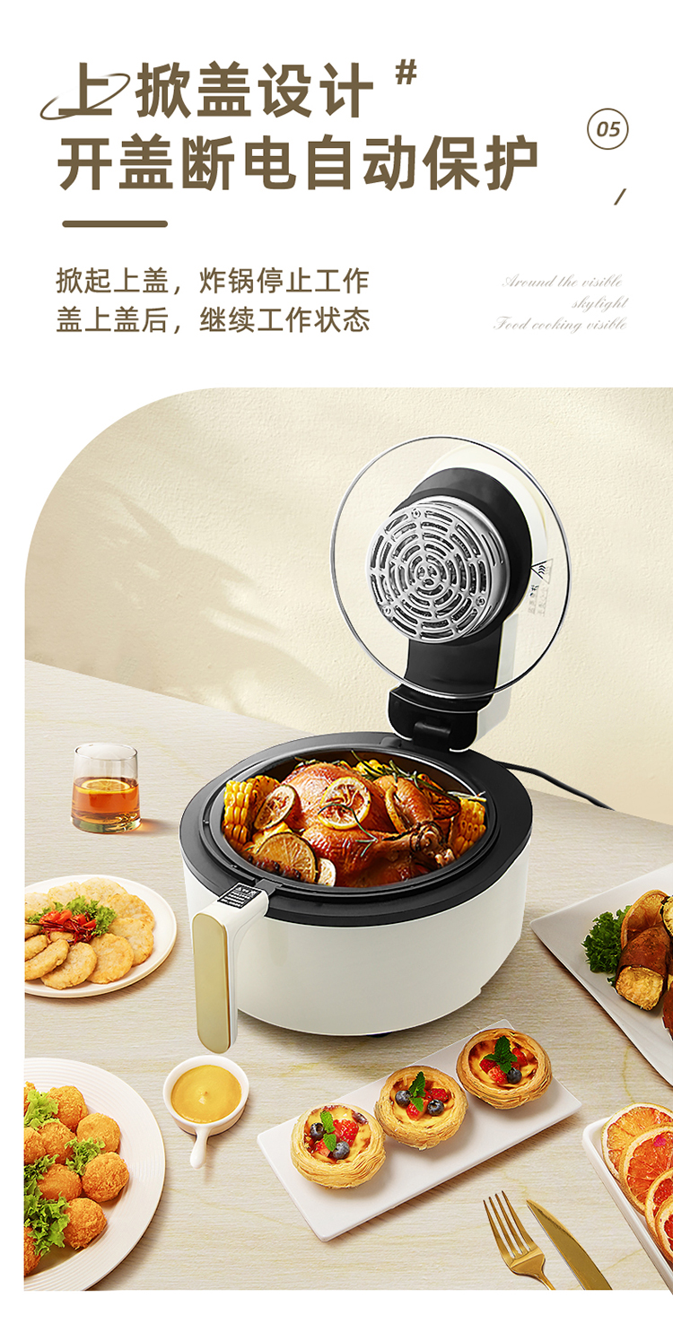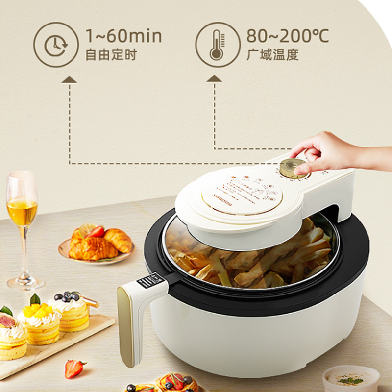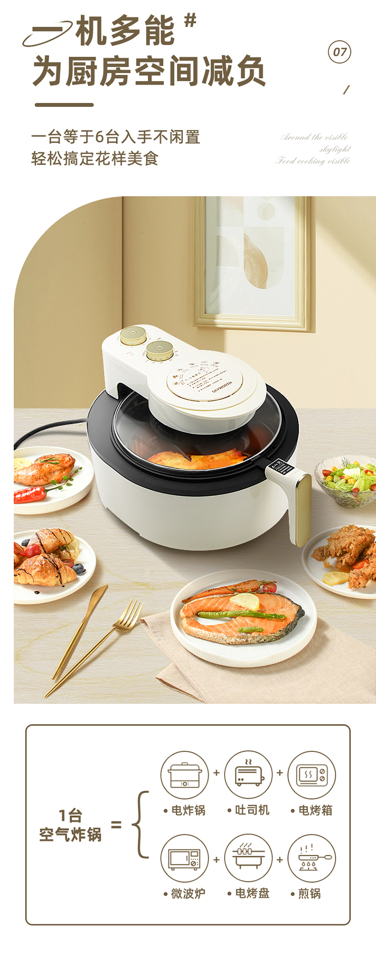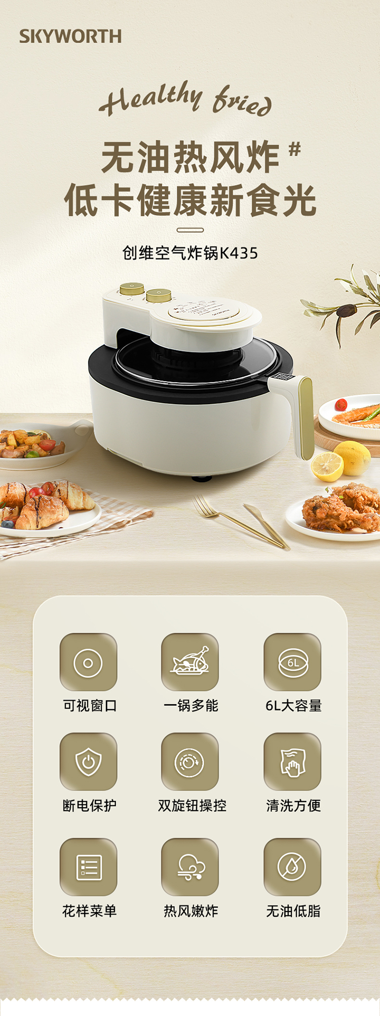 创维skyworth网红款热销爆款全景可视天窗空气炸锅 家用智能无油电炸锅机烧烤机 6L大容量 K435米白色