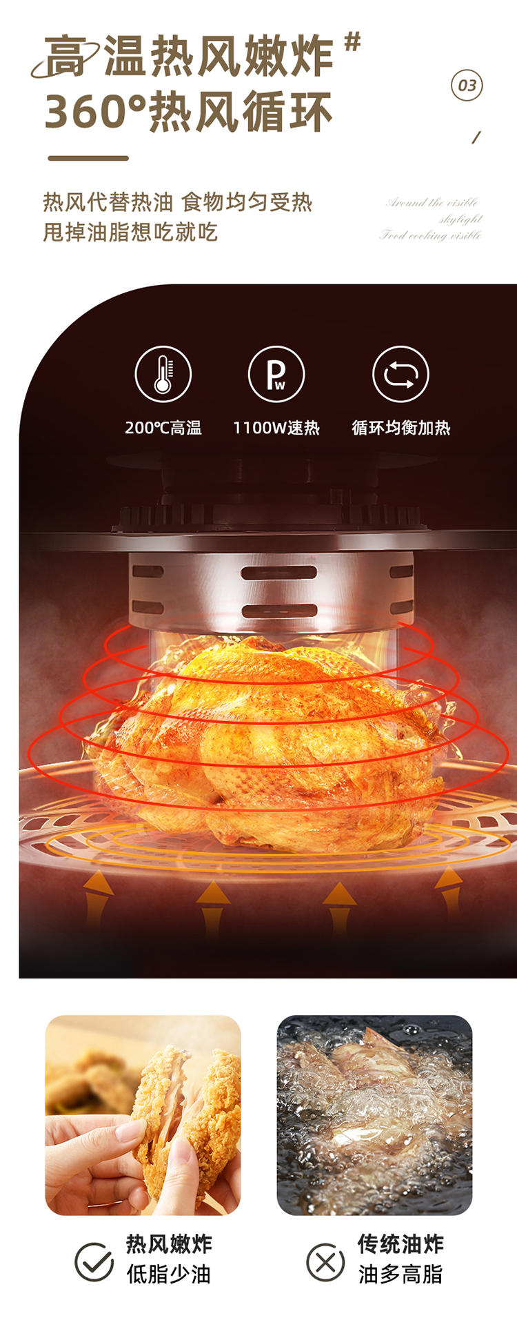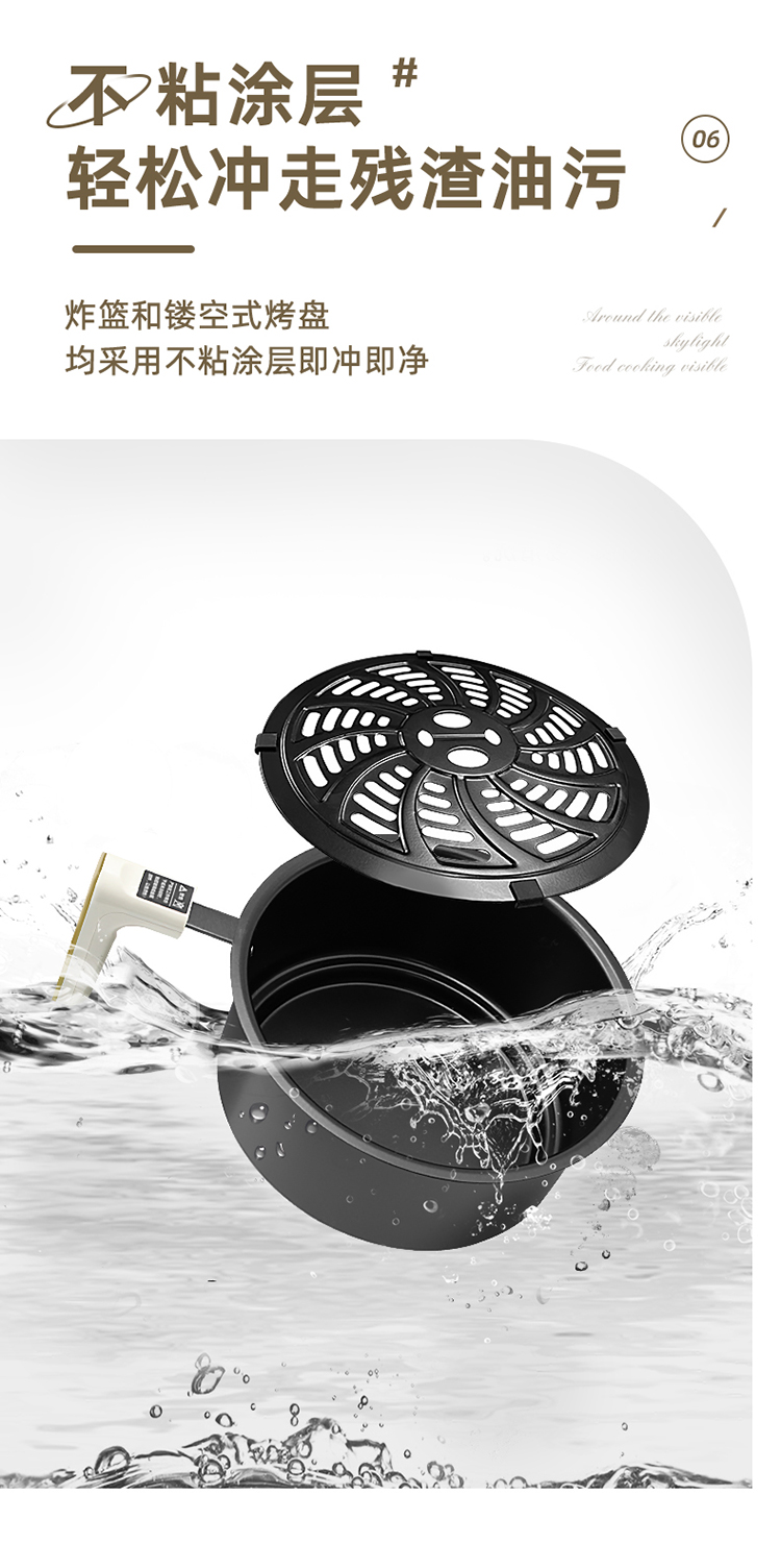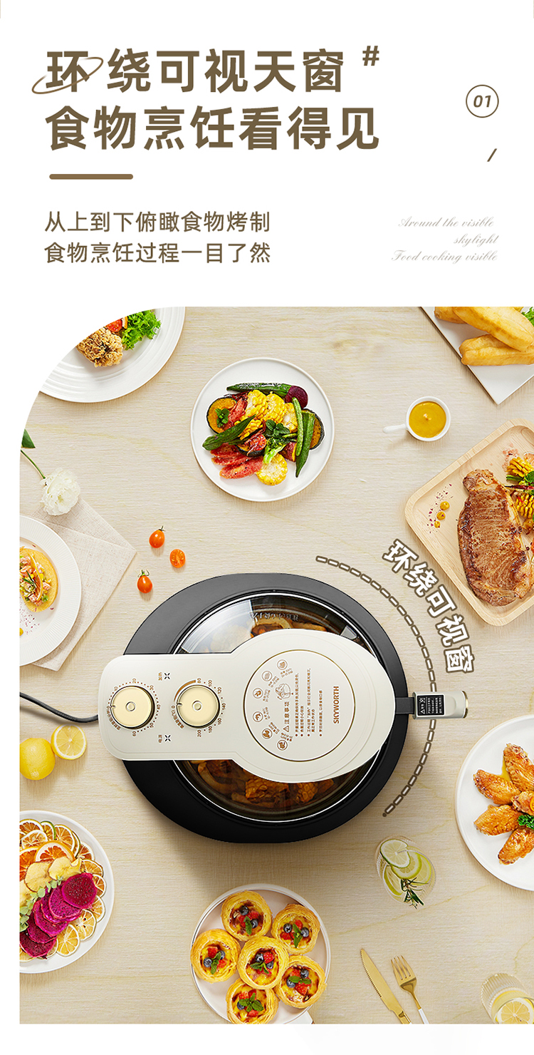 创维skyworth网红款热销爆款全景可视天窗空气炸锅 家用智能无油电炸锅机烧烤机 6L大容量 K435米白色