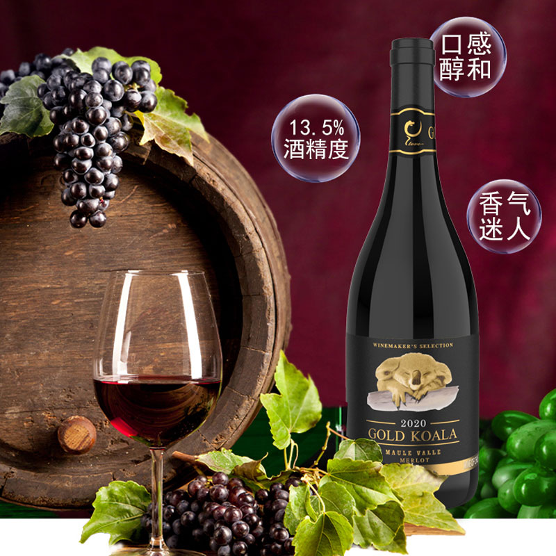 智利原瓶进口金考拉梅洛精选干红葡萄酒13.5度750ml/瓶【新疆/西藏不发货】