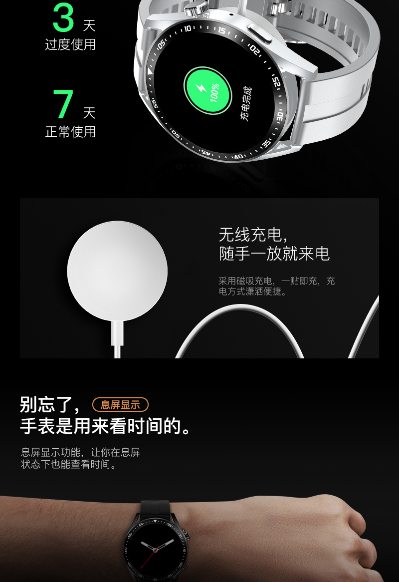 LEFIT勒菲特GT3Pro智能蓝牙手表多功能运动心率血压音乐通用代计步健康防水