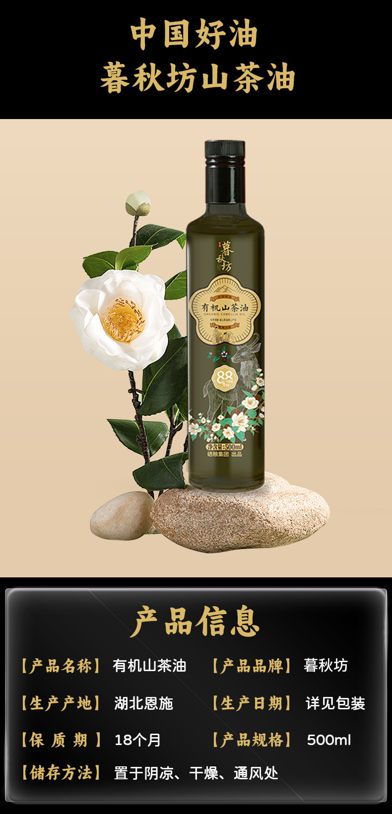 暮秋坊 纯山茶籽油 硒都恩施原产油茶籽物理压榨食用茶籽油 暮秋坊有机山茶油500ml