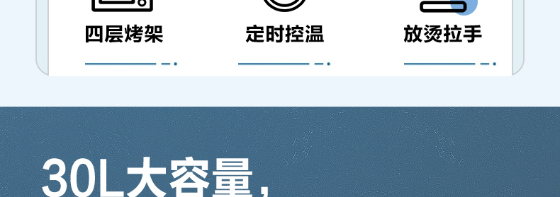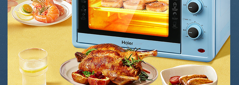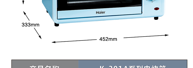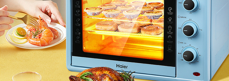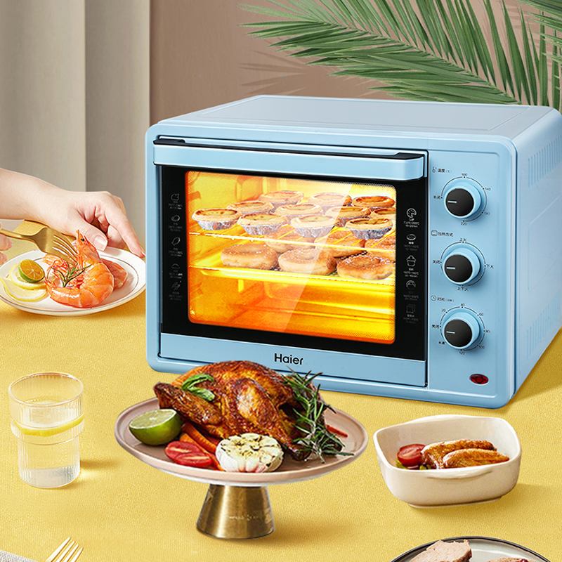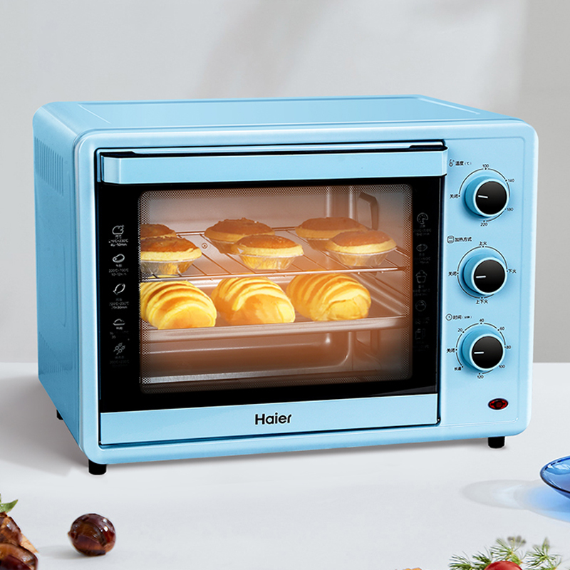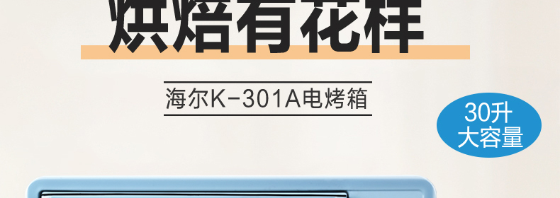 海尔Haier 多功能家用大容量30L 电烤箱 上下独立温控多段式定时控温四层烤位可视化大窗口专业烘焙烤箱K-301A