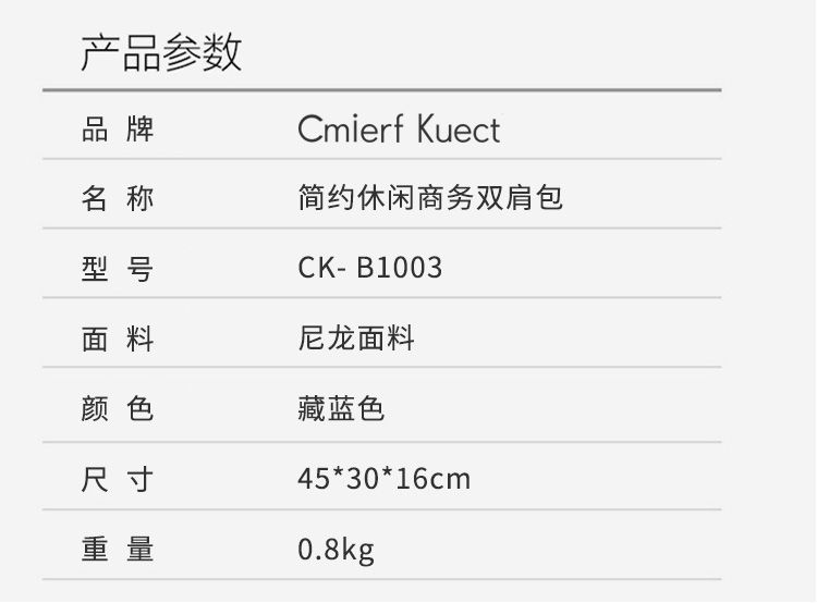 Cmierf Kuect 简约休闲商务双肩包CK-B1003