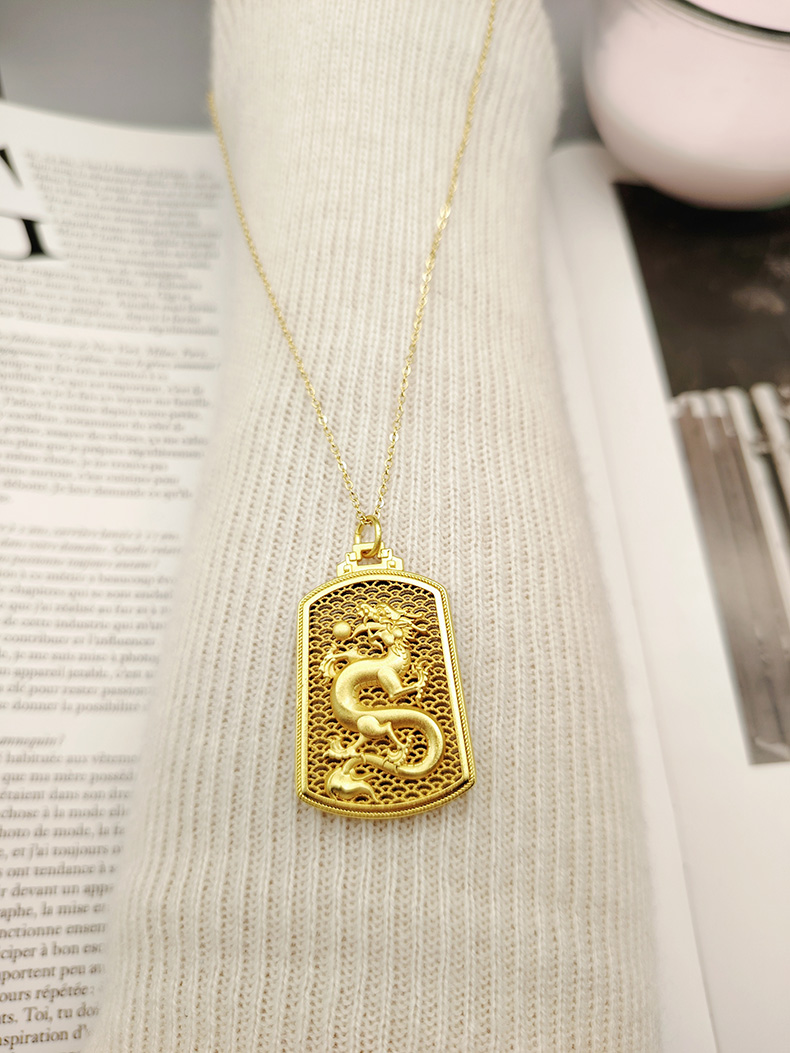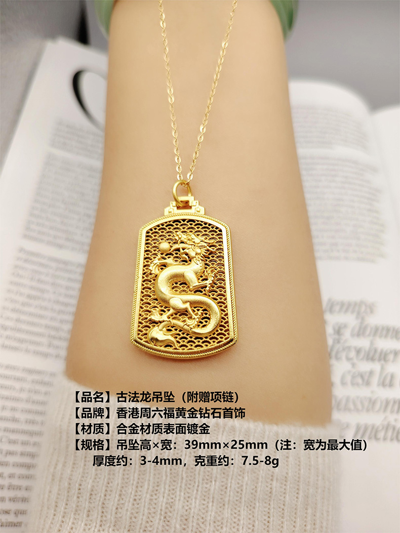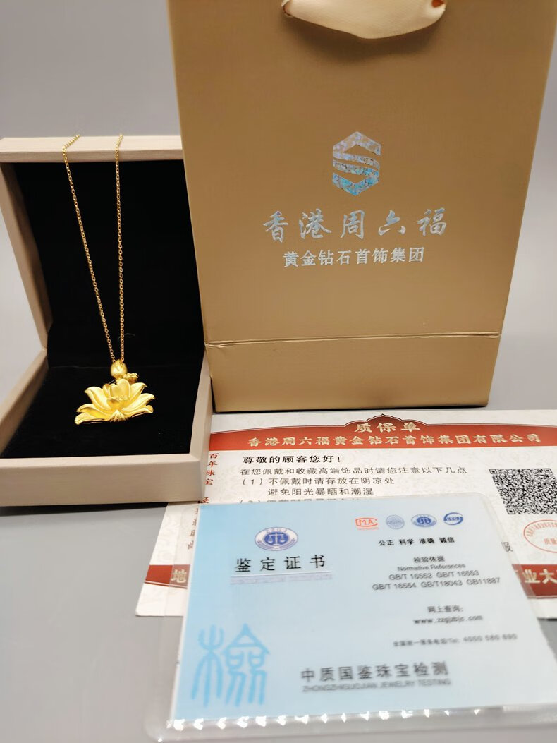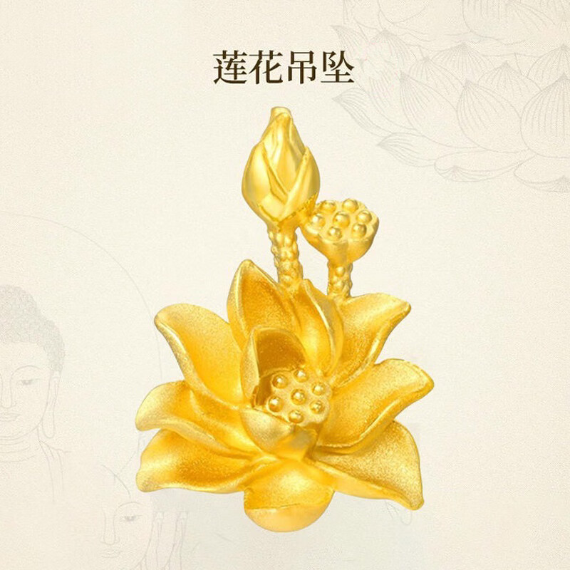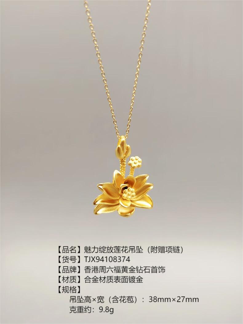 龙年大吉龙年好运 香港周六福黄金钻石饰品合金镀999金饰品镀金-古法龙/古法凤/魅力绽放莲花吊坠表层金【每证一品】礼盒+手提袋+证书