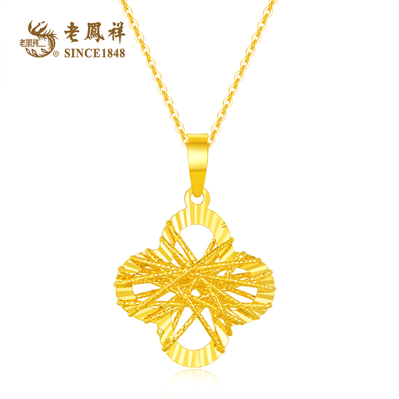 【每证一品】老凤祥【足金车花系列 加倍闪耀】足金设计款<金缕四叶草>吊坠(送S925银链)