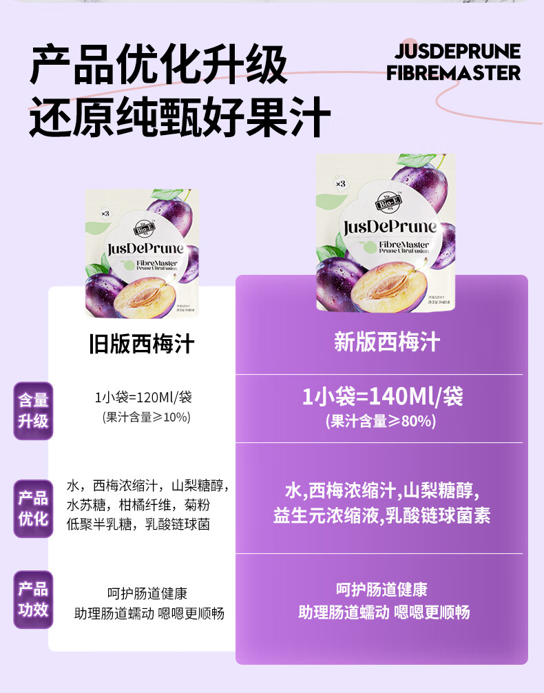 Bio-E 西梅汁浓缩果蔬酵素 140ml/包*5袋装*3 饮料益生元纤维果汁排宿便清肠【内蒙古 青海,宁夏 海南,甘肃,新疆 西藏不发货】