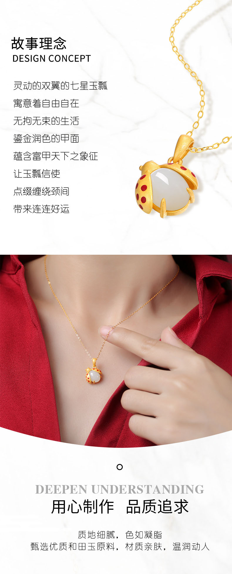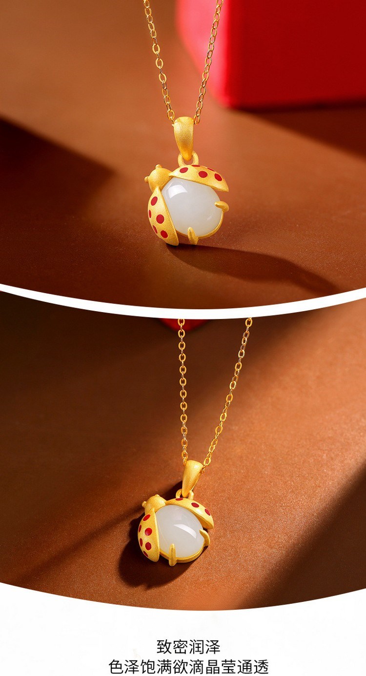 香港周六福银镶玉-甲壳虫 吊坠+项链 新疆、西藏、青海不发货