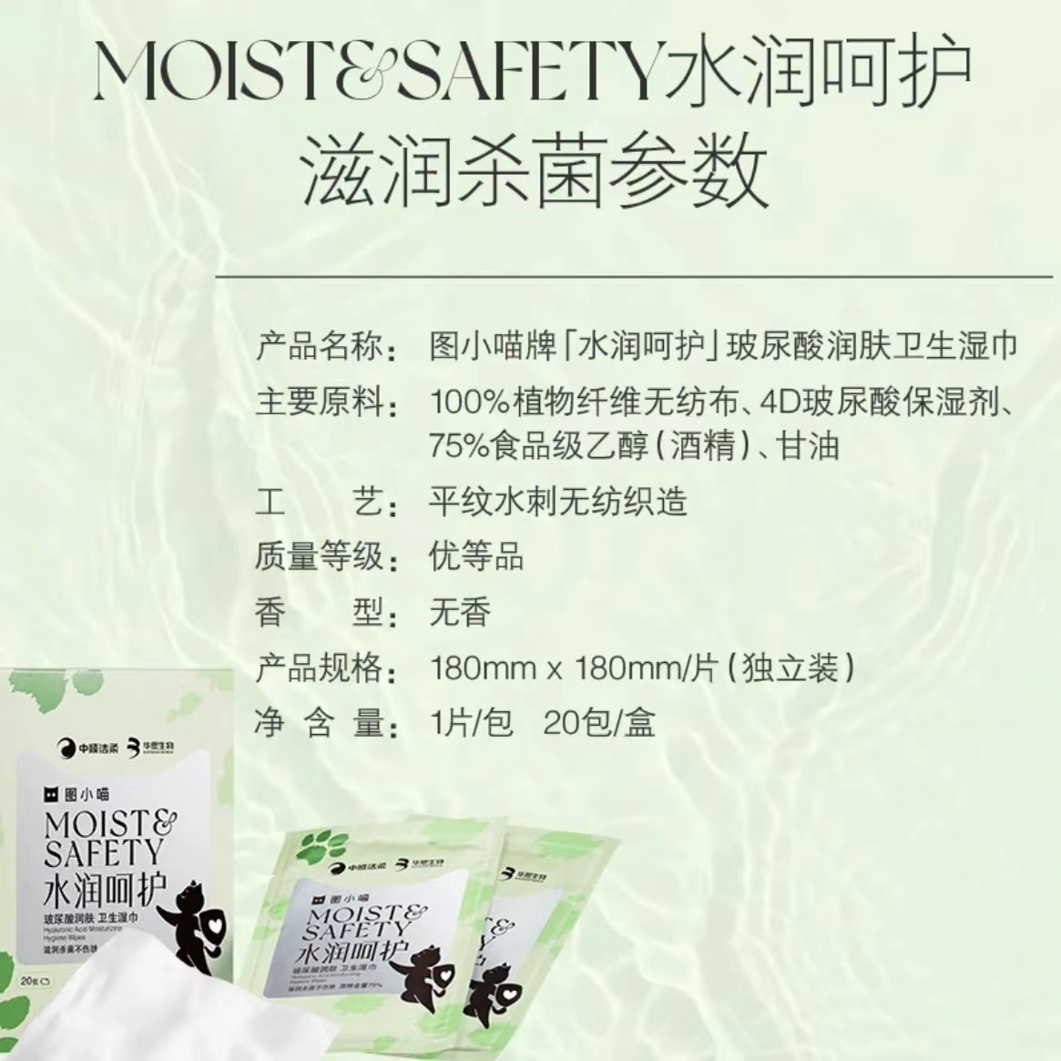 图小喵玻尿酸酒精润肤消毒湿巾75%酒精杀菌消毒棉巾无香20包/盒