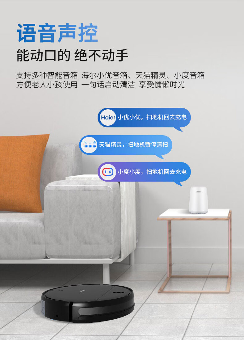 海尔 Haier 家用智能全自动扫地机器人 小钢炮RWA3026BU1升级版吸扫拖一体 7.6cm超薄机身 APP智控