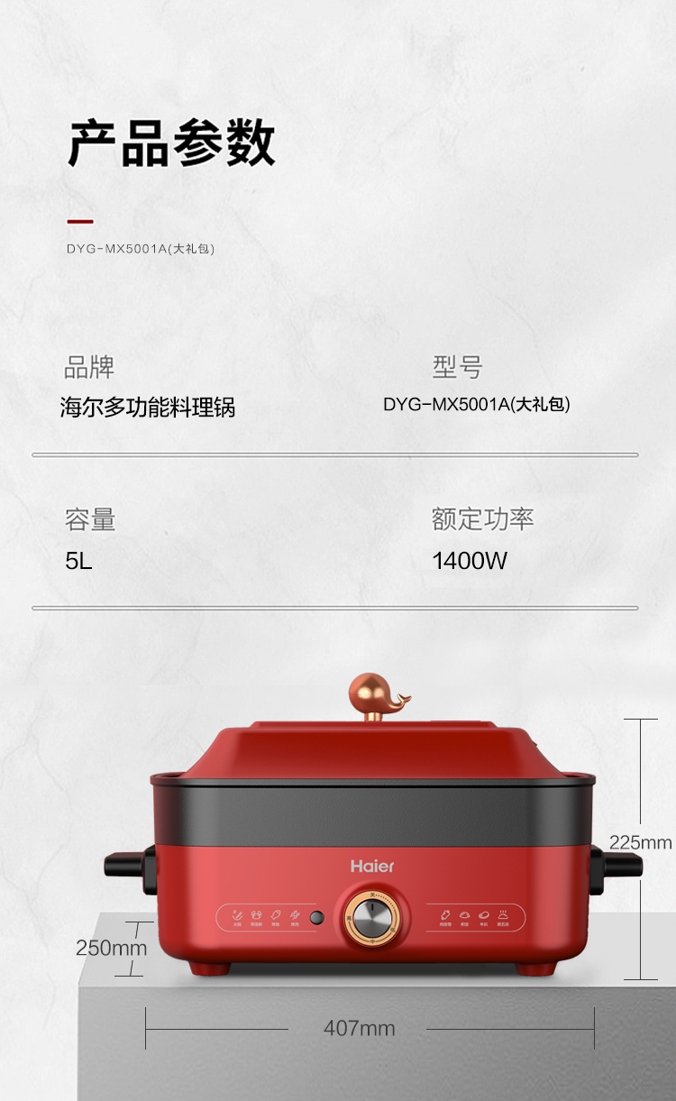 海尔 Haier 多功能料理机电火锅烧煎烤蒸煮一机多用 多功能料理机DYG-MX5001A