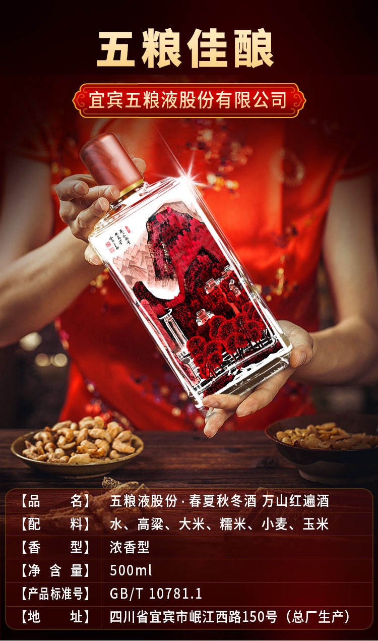 【4瓶整箱装】五粮液宜宾五粮液股份出品52度浓香型白酒送礼宴请 春夏秋冬万山红遍酒500ml*4瓶整箱装 买2箱送一套酒具【新疆/西藏/港澳台不发货】