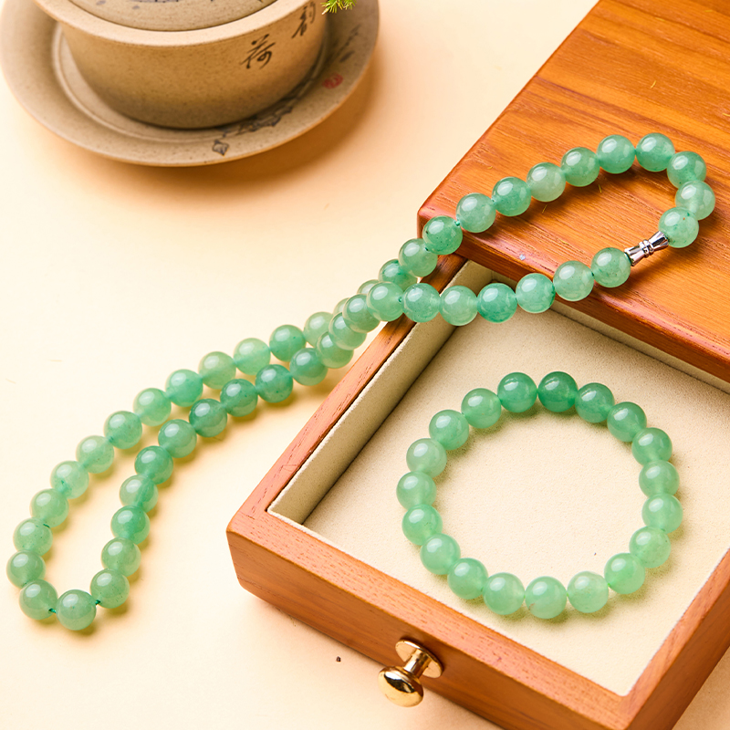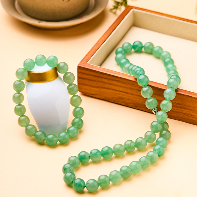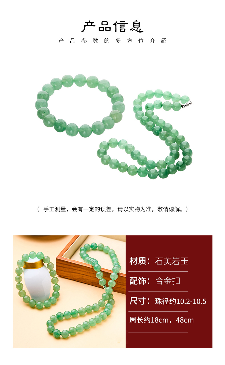琳琯瑛手串妈妈链两件套装【主材质:石英岩玉,配饰:合金扣,珠径约10.2-10.5,周长约18cm和48cm】LGY700每证一品