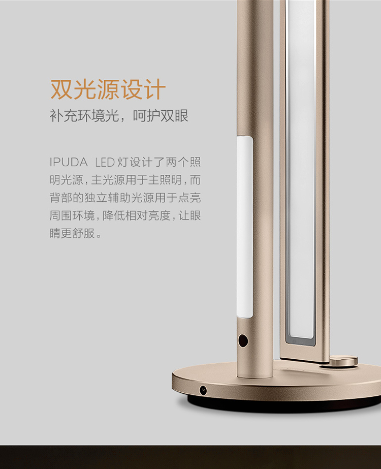 爱浦达 IPUDA 双光源LED台灯减蓝光学习阅读办公卧室床头灯无极调光T1