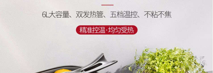 【一口好锅 改变生活】德沃仕多功能电热锅6升大容量双发热管电煮锅电火锅 DWS-1200