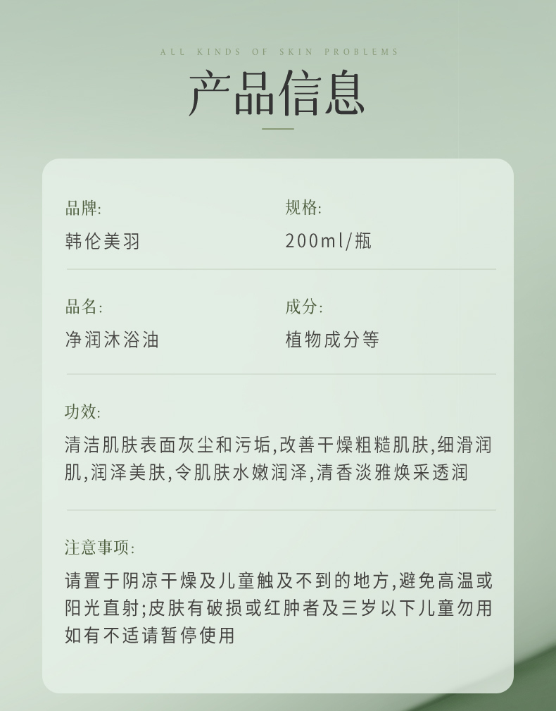 韩伦美羽净润沐浴油200ml*3瓶LS100965