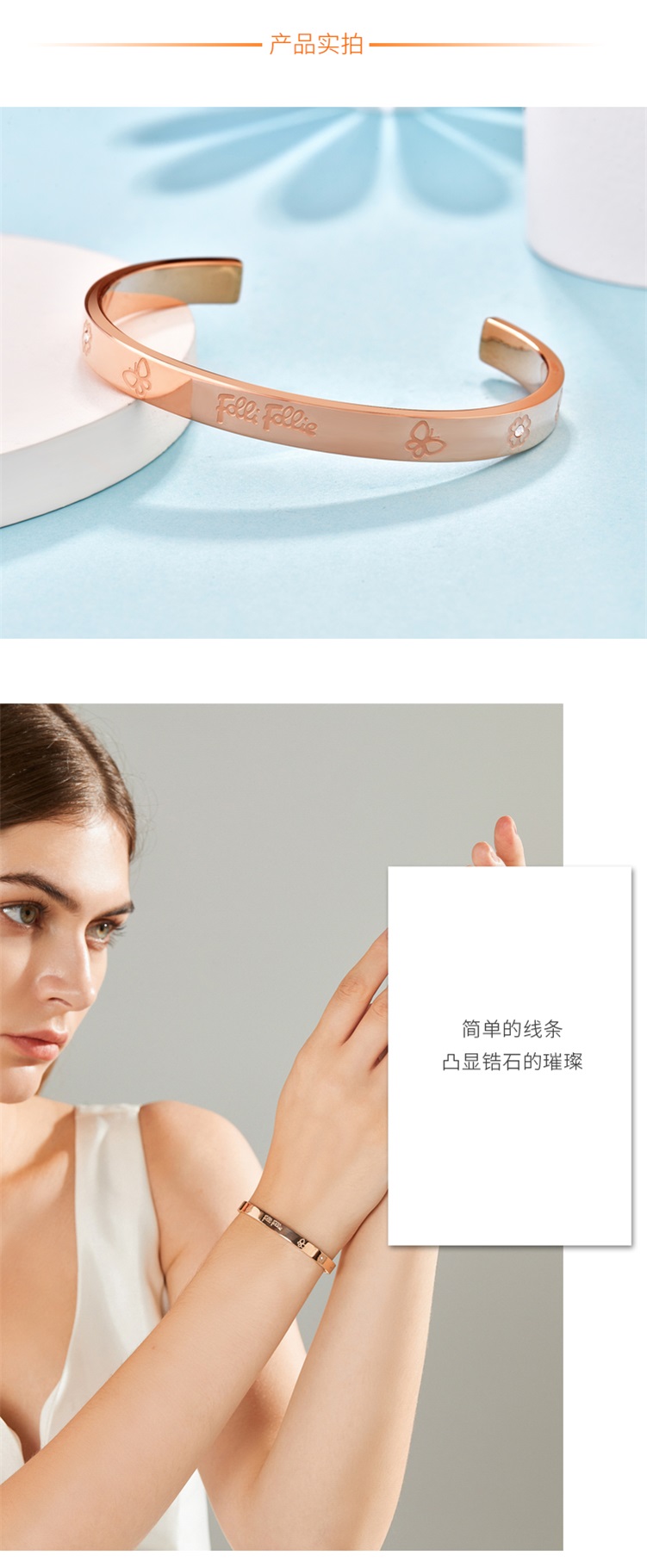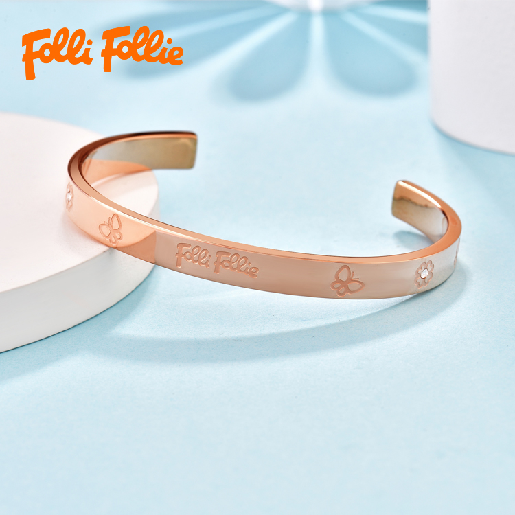 【FOLLI FOLLIE】普区包邮 蝴蝶四叶草手镯 玫瑰金色3B21T022RC 精美包装 母亲节情人节礼物