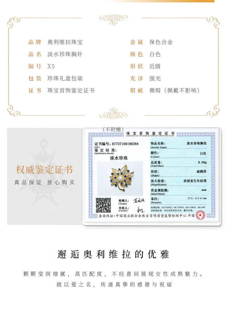 奥利维拉胸针 女简约别针珍珠大气毛衣装饰创意百搭简约气质吊坠配饰【下单备注款式选择】(货品不随带鉴定证书,介意者慎拍)