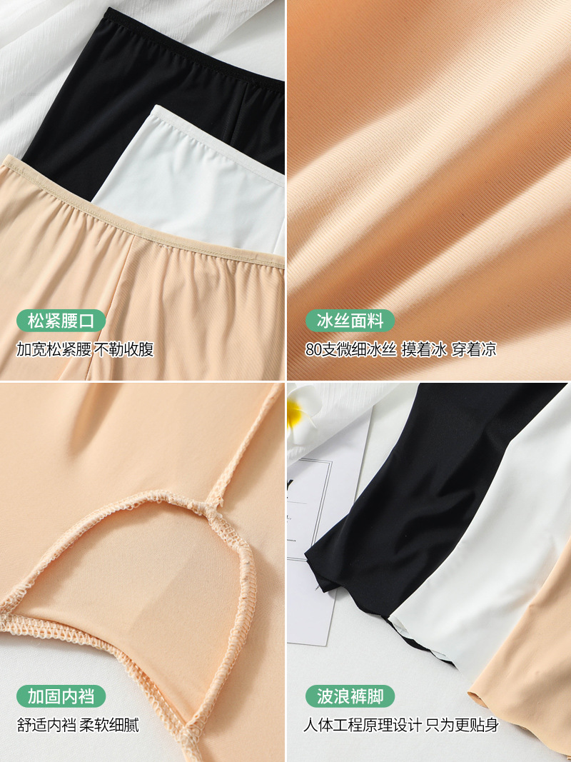 【2条装颜色随机】无痕冰丝打底防走光安全裤女士夏季薄款不卷边短裤透气保险平角裤