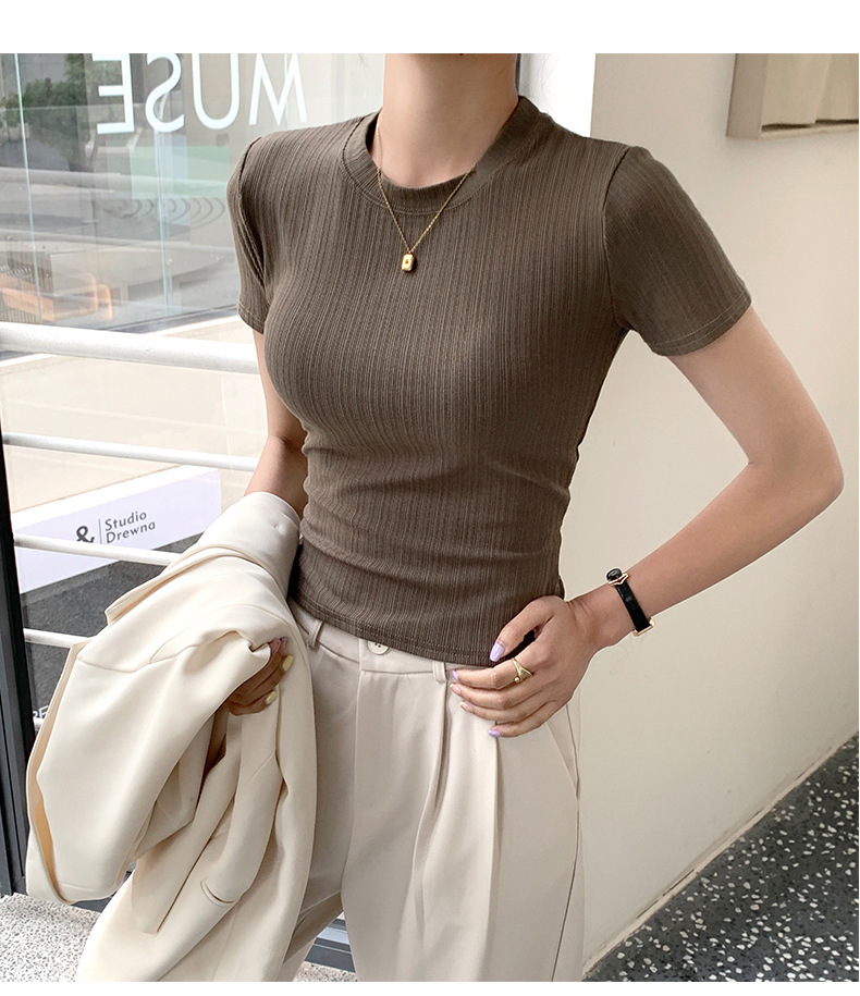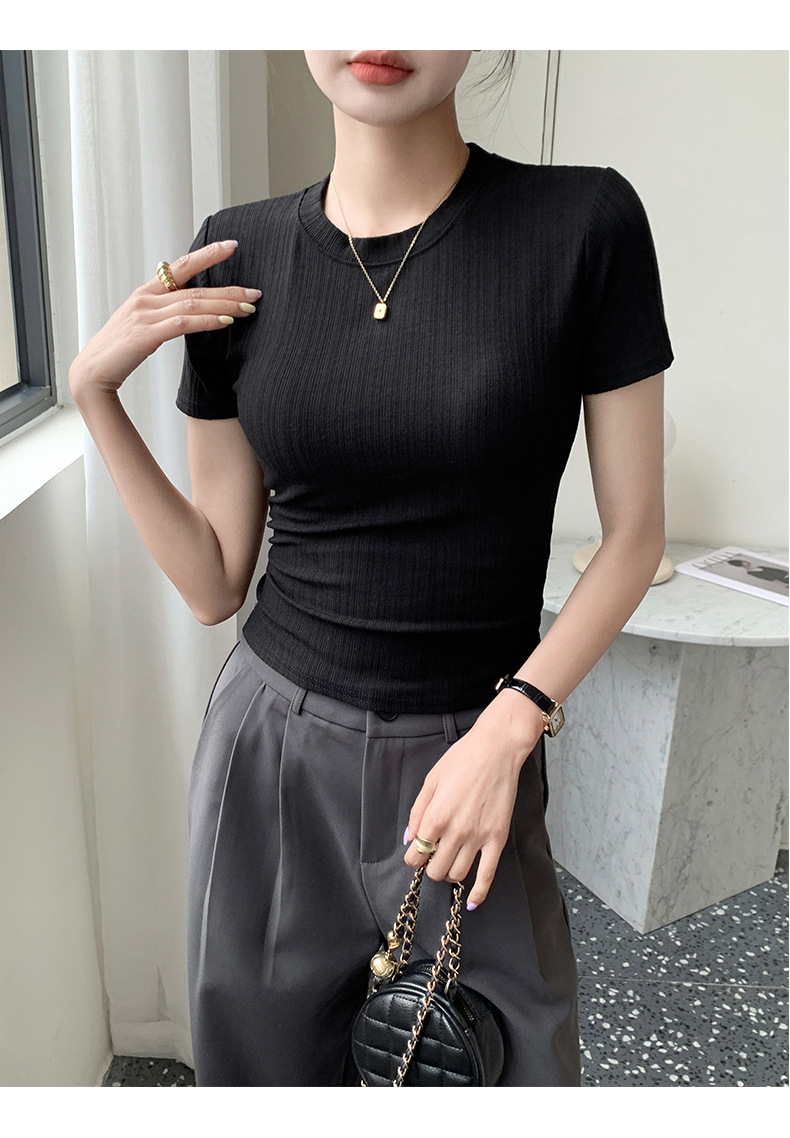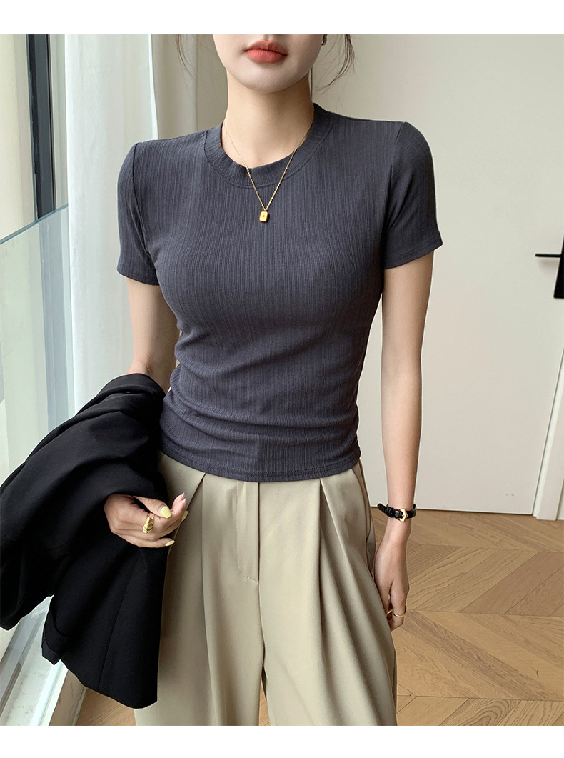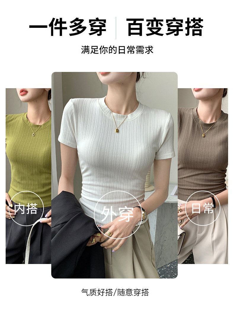 新款圆领体恤女夏季2024上衣休闲短袖t恤百搭透气女装修身打底衫