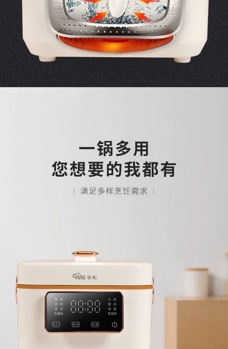 云礼 家用智能控温电饭煲 24H智能预约 3L多功能电饭煲 型号:XP-J3