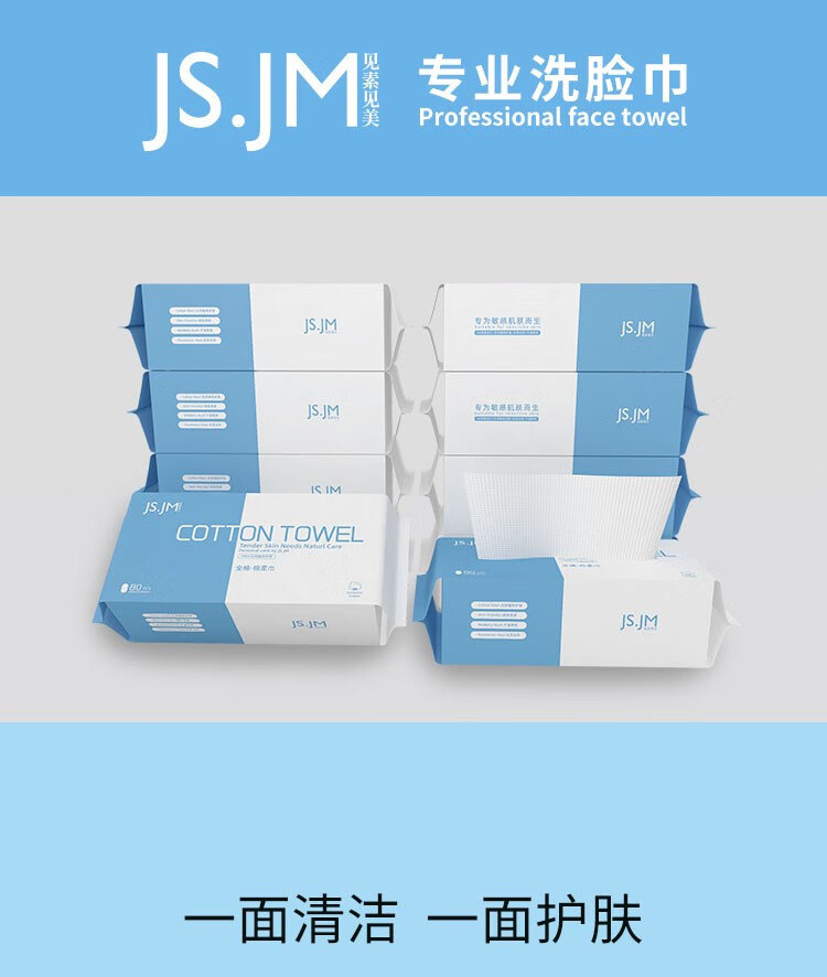 见素见美 全棉双面洗脸巾 棉柔巾 80抽/包 10包装