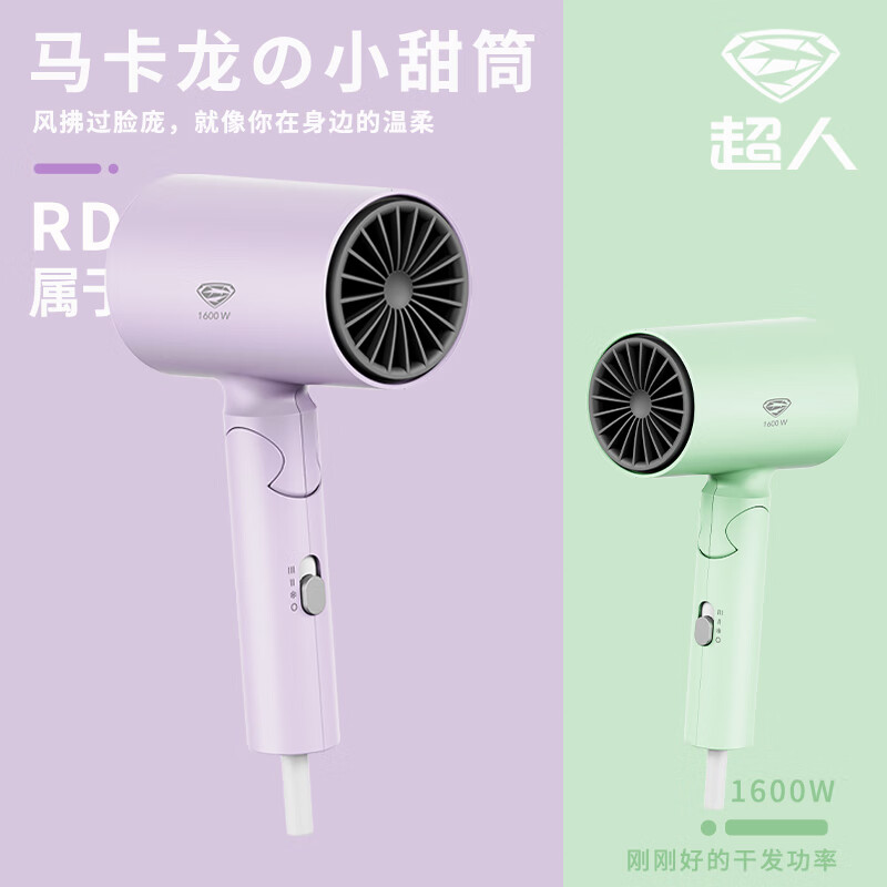 【超人】电吹风RD1658 普区包邮 负离子大风量速干便携简约吹风筒折叠便携款吹风机