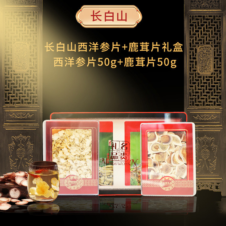 长白山西洋参片50g+鹿茸片50g 礼盒