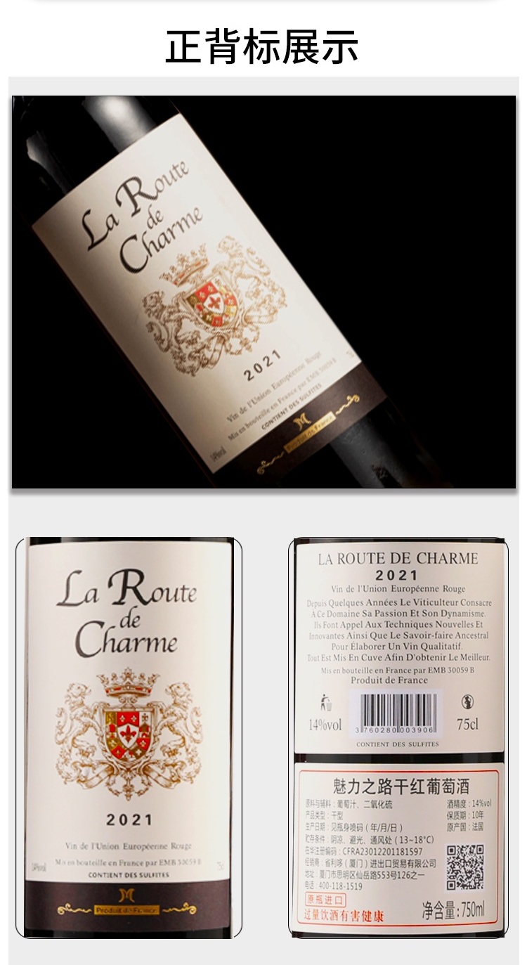 法国原瓶魅力之路La Route DE CHarme干红葡萄酒750ML/2瓶礼品装
