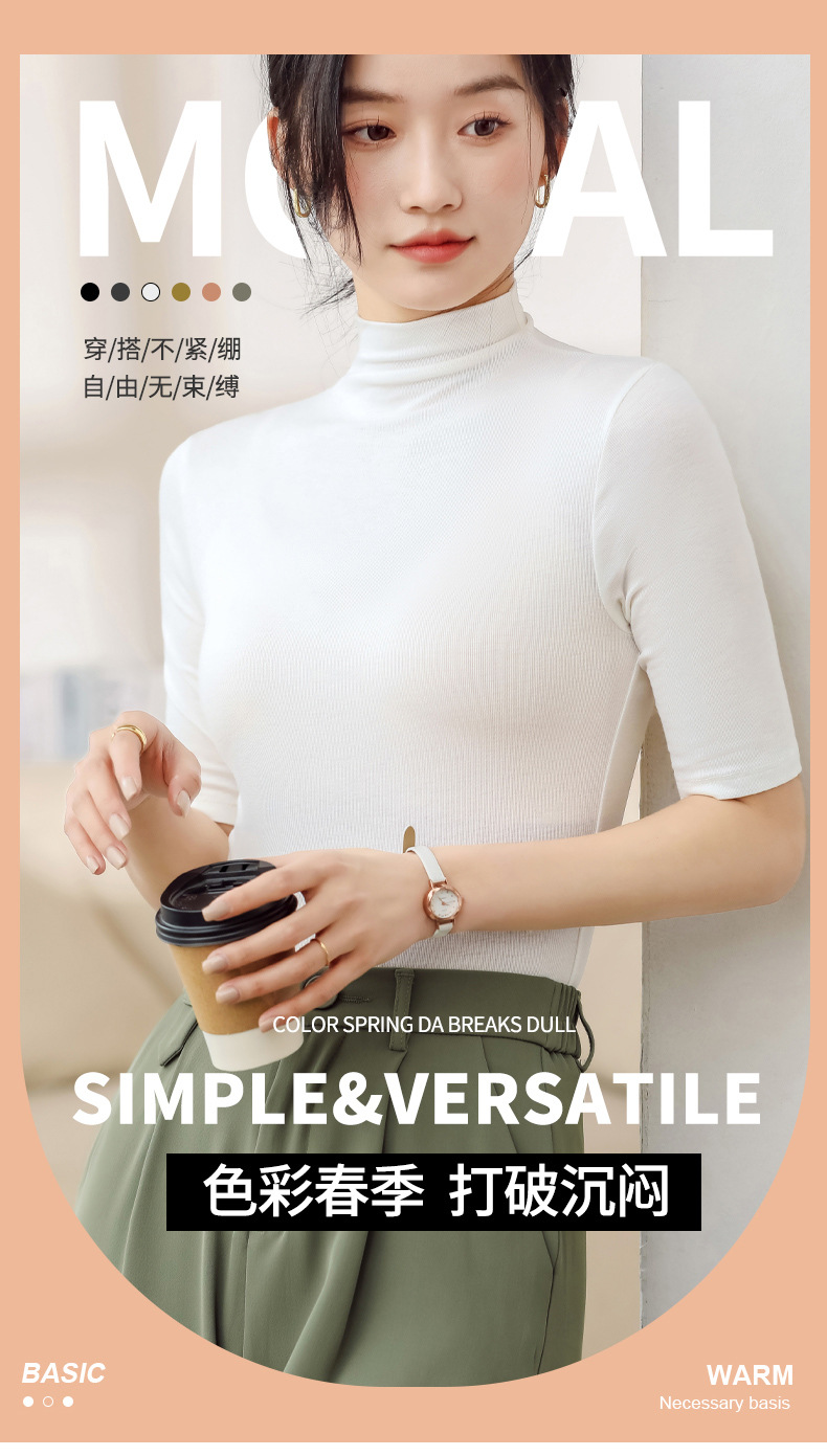 2024年春夏新款莫代尔五分袖修身打底衫短袖T恤中袖百搭纯色上衣