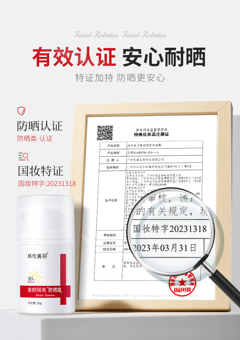 【3瓶】韩伦美羽防晒霜乳美白脸面部身体50倍隔离防紫外线喷雾女男专用