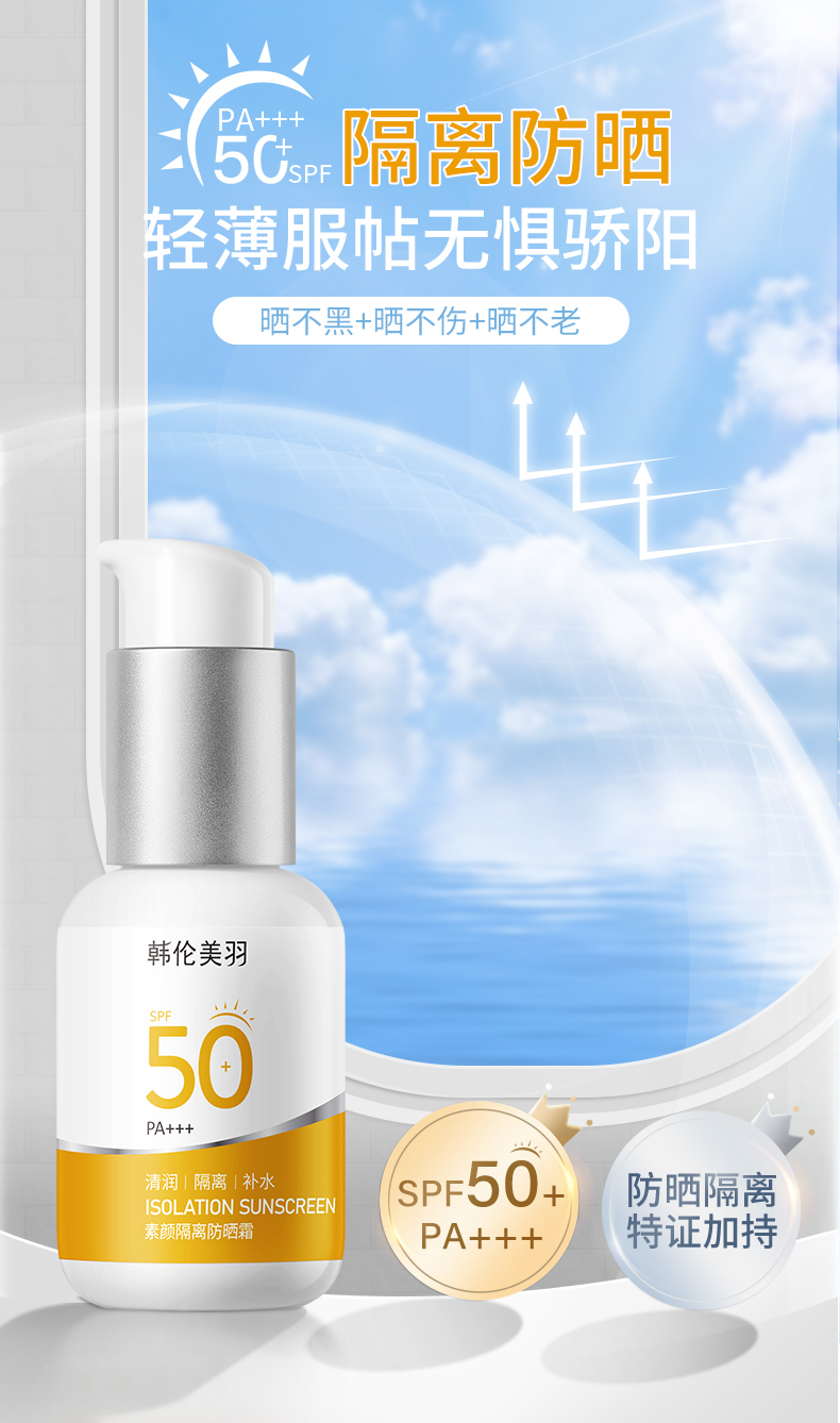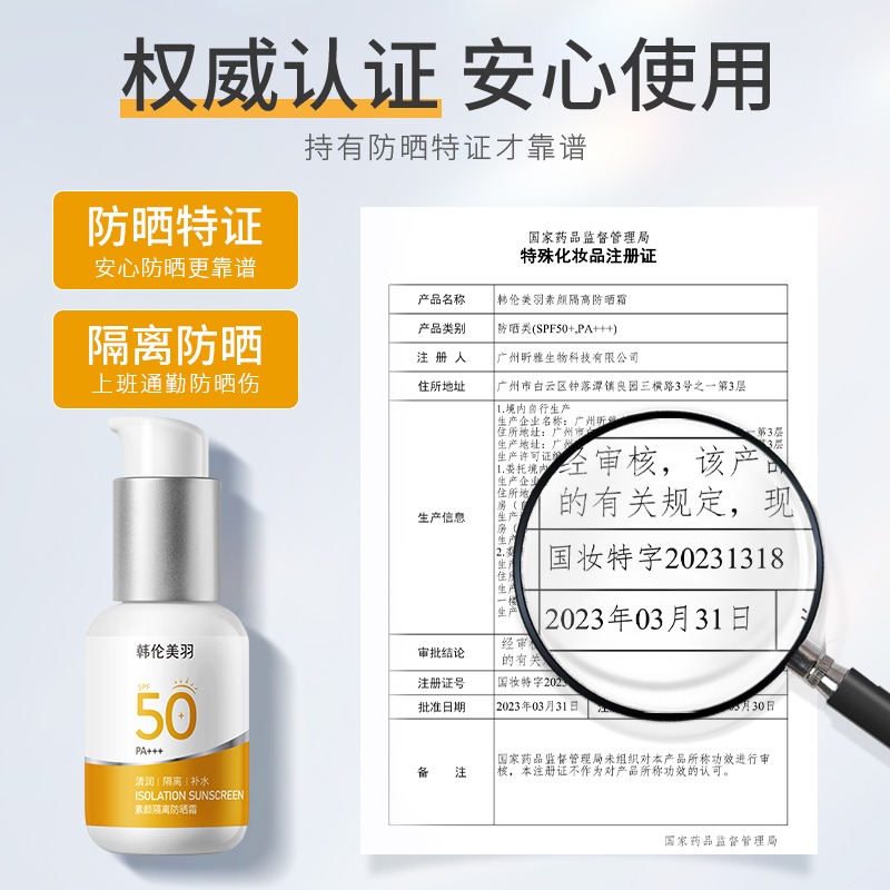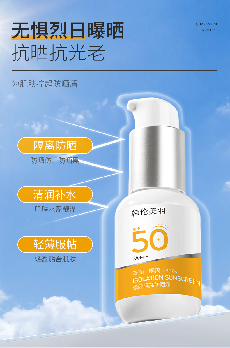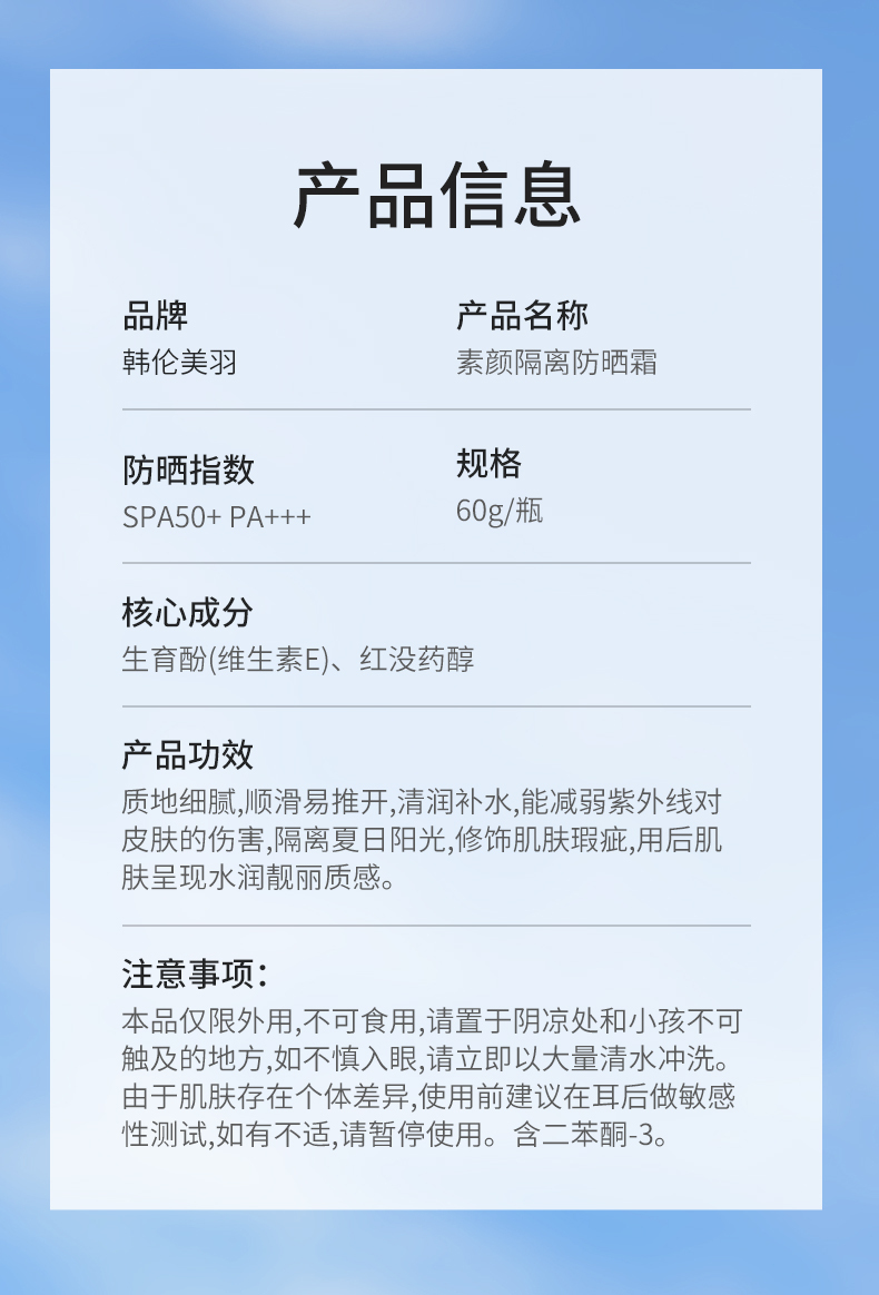 韩伦美羽素颜保湿隔离防晒霜60g*3瓶