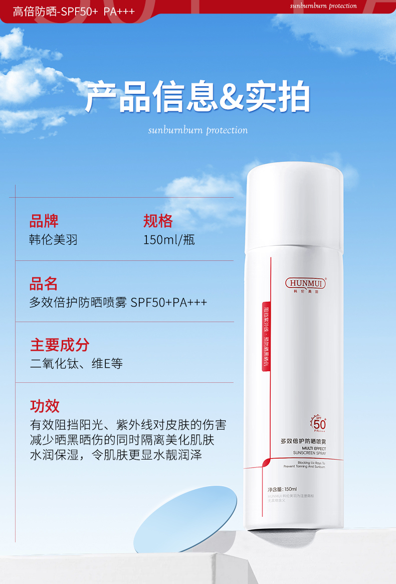 【3瓶】韩伦美羽多效倍护防晒喷雾150ml倍防晒防紫外线夏季保湿喷雾