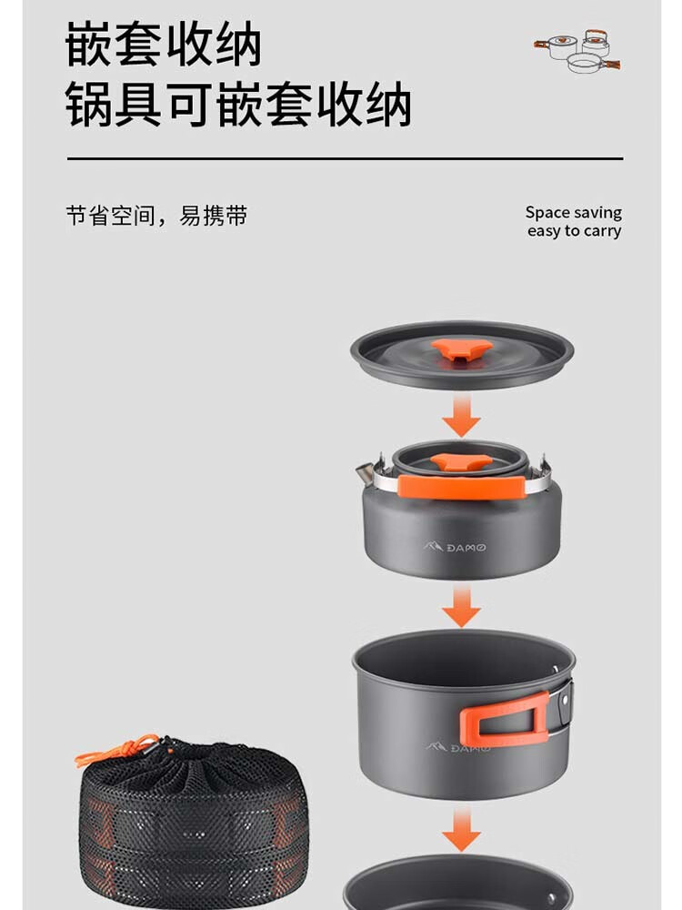 【大迈】便携折叠套锅 普区包邮 易携带易清洗 不粘性强 导热快 DM-9005