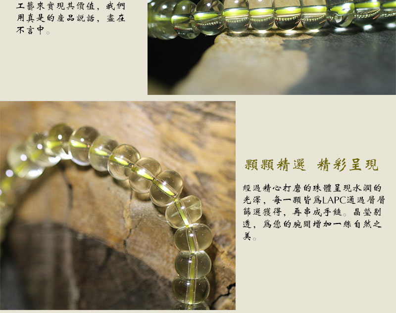 LAPC水精之恋 黄晶碟形手链 水晶手链珠径8mm【每品一证】