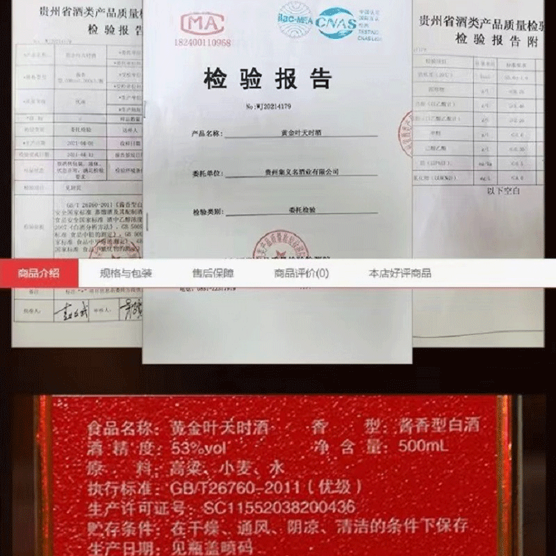 黄金叶天时53度酱香型白酒500ml * 6瓶