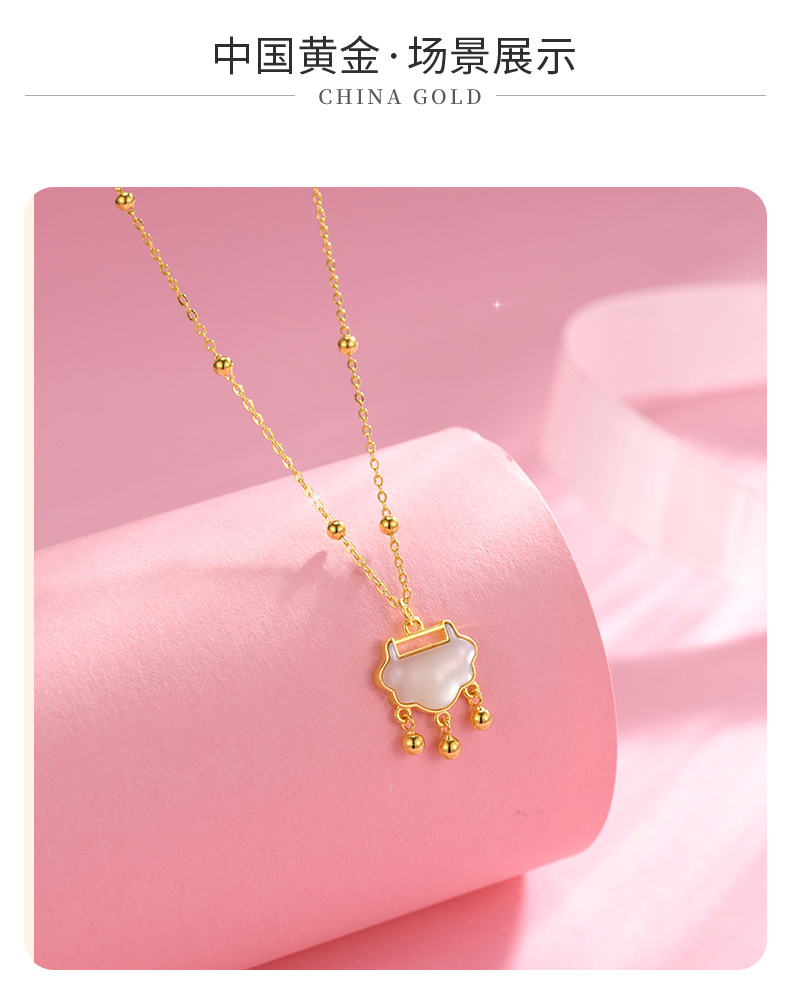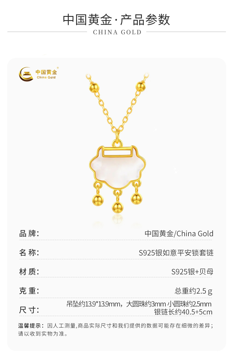 中国黄金S925银镶贝母称心如意锁套链 ZGHJ220984