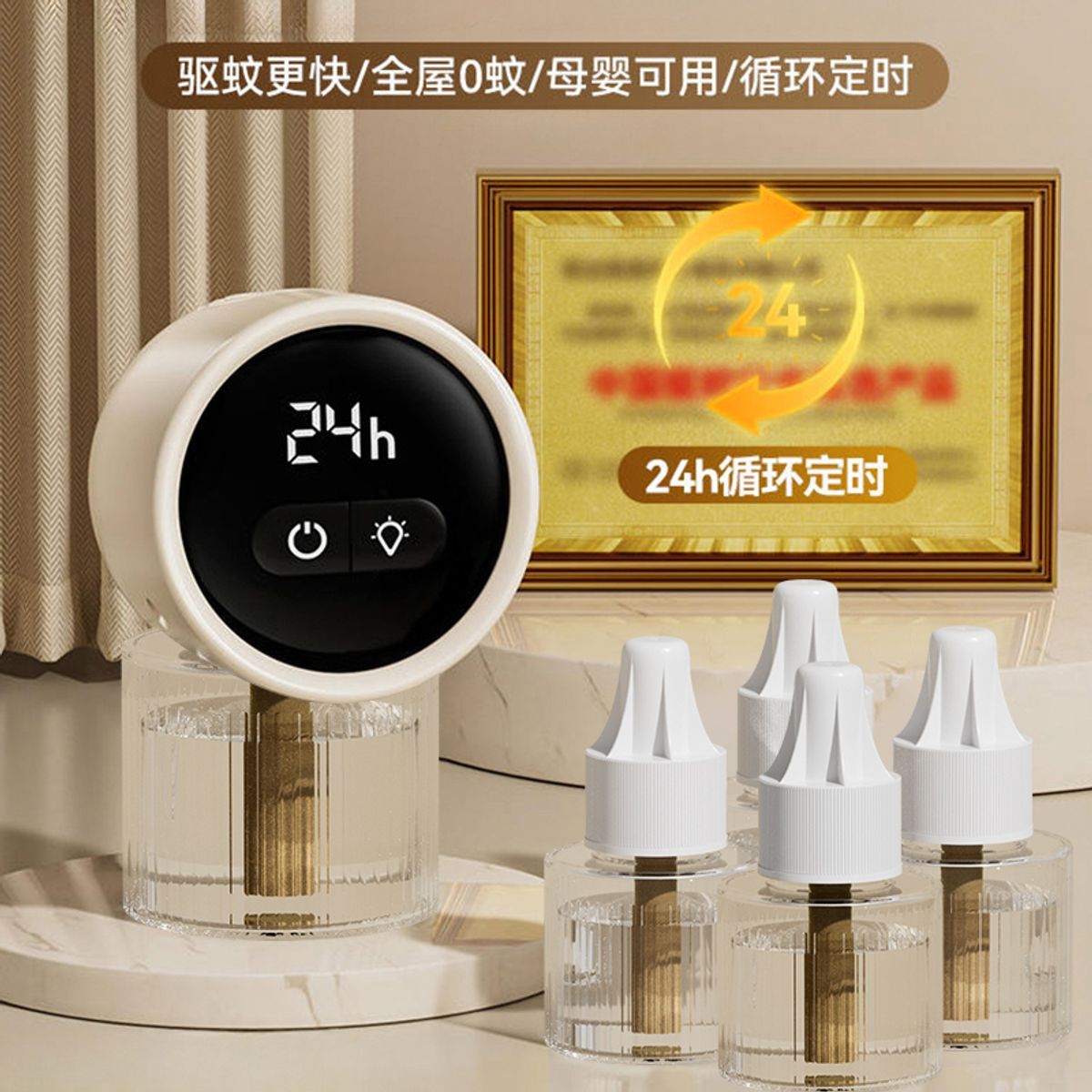 志高灭蚊液器定时驱蚊液插电式无味持久驱蚊器JXY-02米白色(1器5液)/WPH