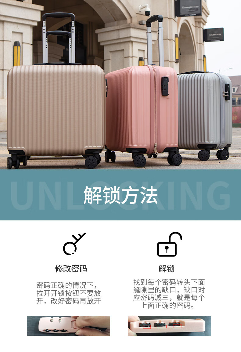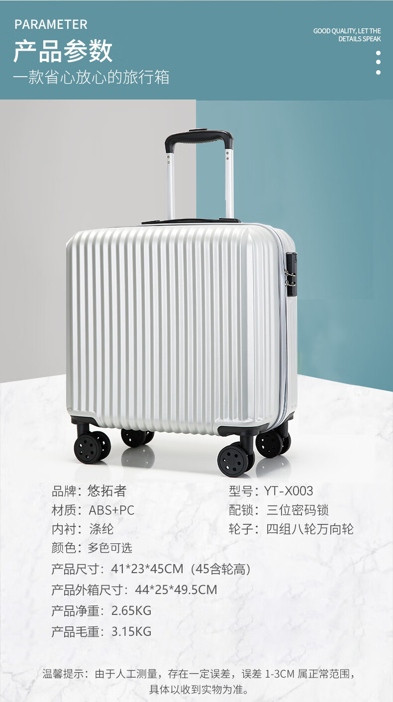 悠拓者ABS万向轮拉杆箱 可登机行李箱 四轮静音 安全密码锁 18寸YT-X003 四色可选