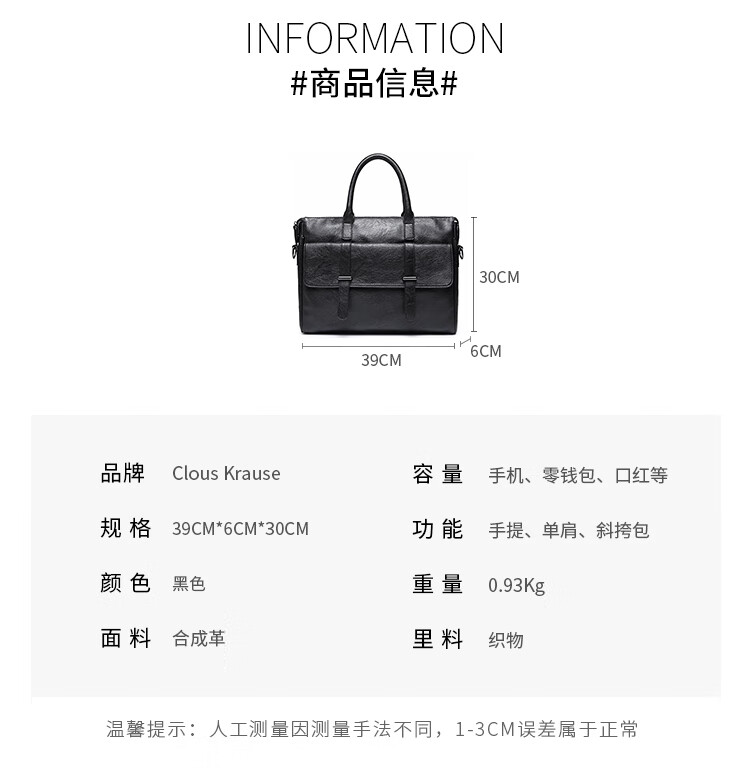 clous krause卡罗纹 凯洛恩男士商务公文包电脑手提包 配肩带CK81339102 全国包邮