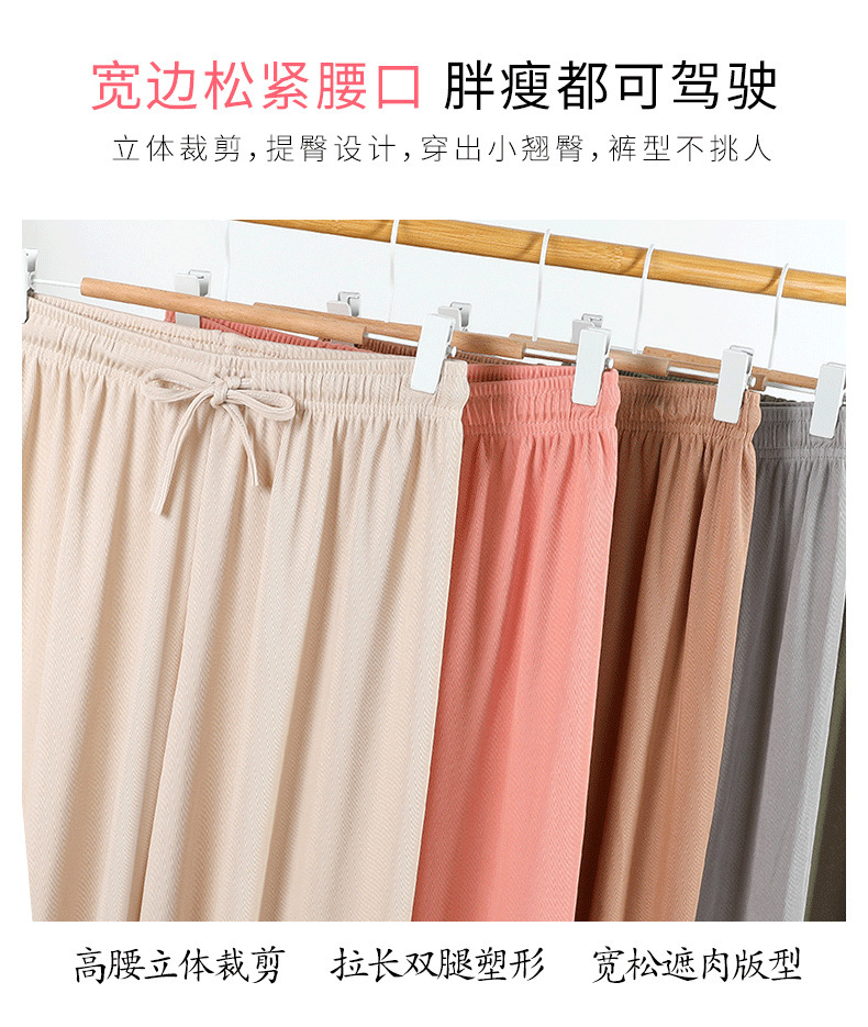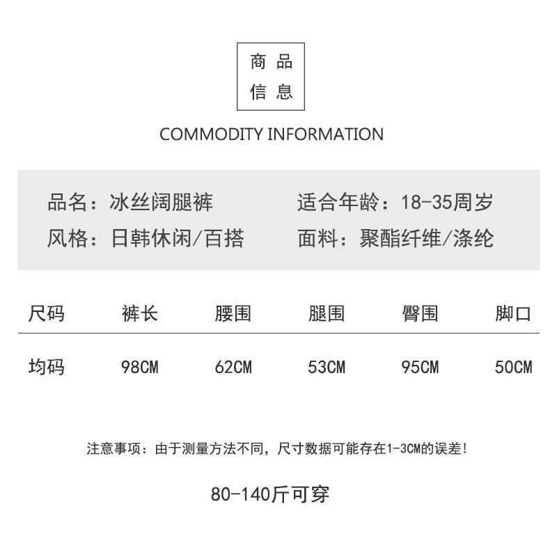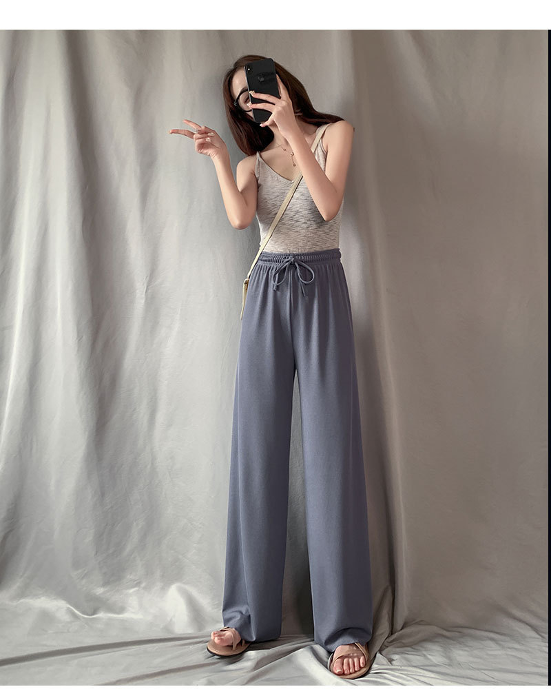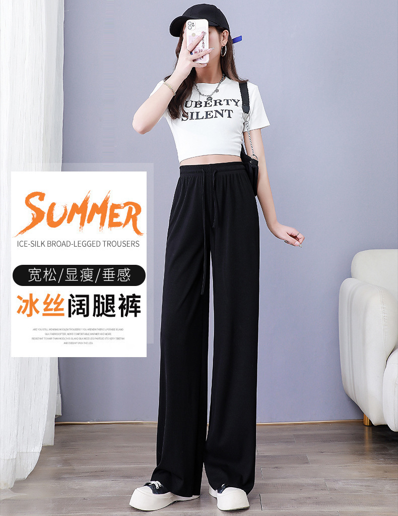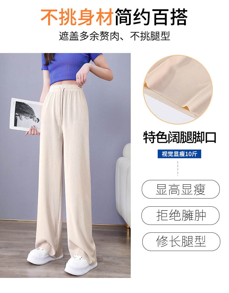 冰丝阔腿裤女夏季薄款2024新款高腰垂感显瘦直筒宽松拖地休闲裤子均码尺寸