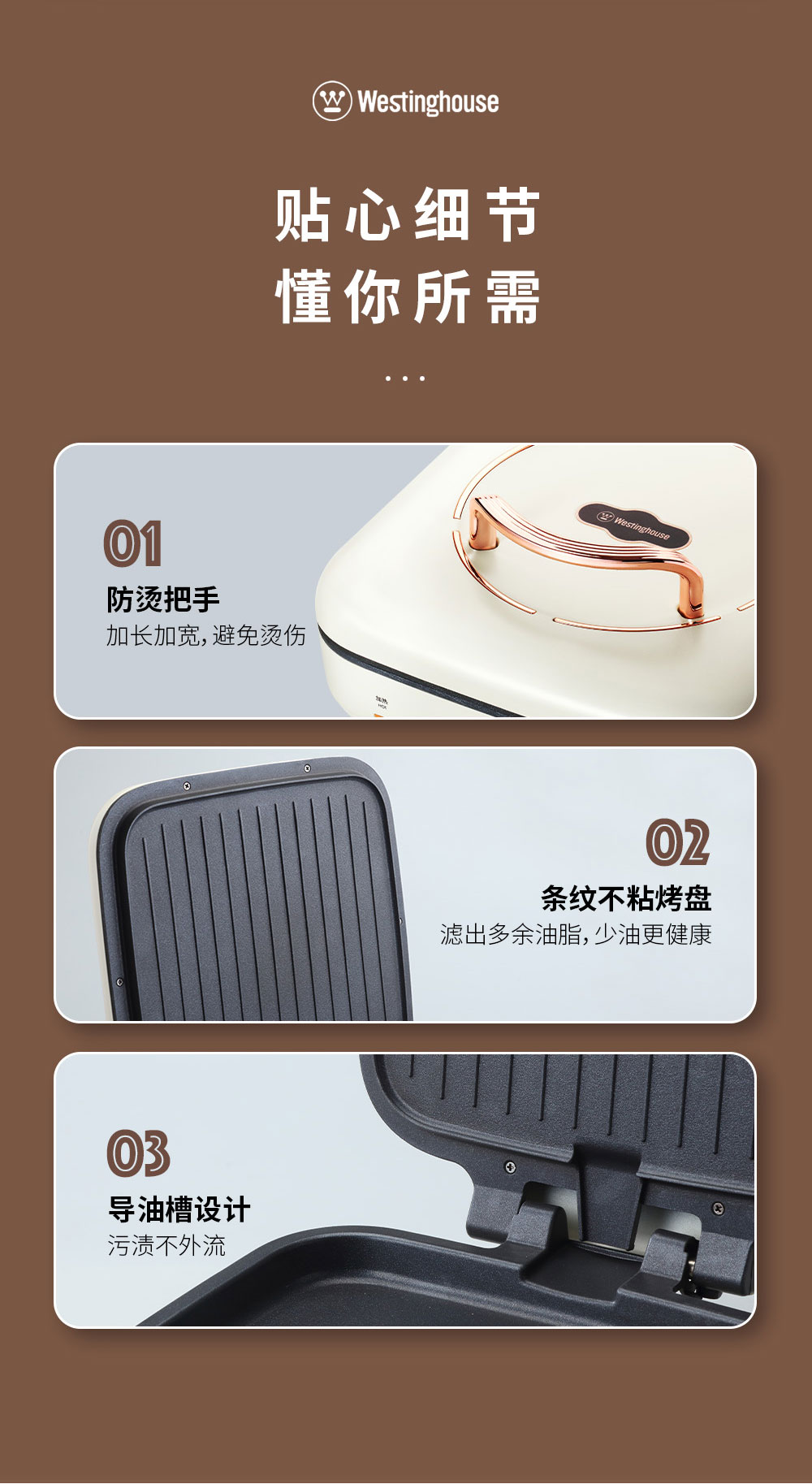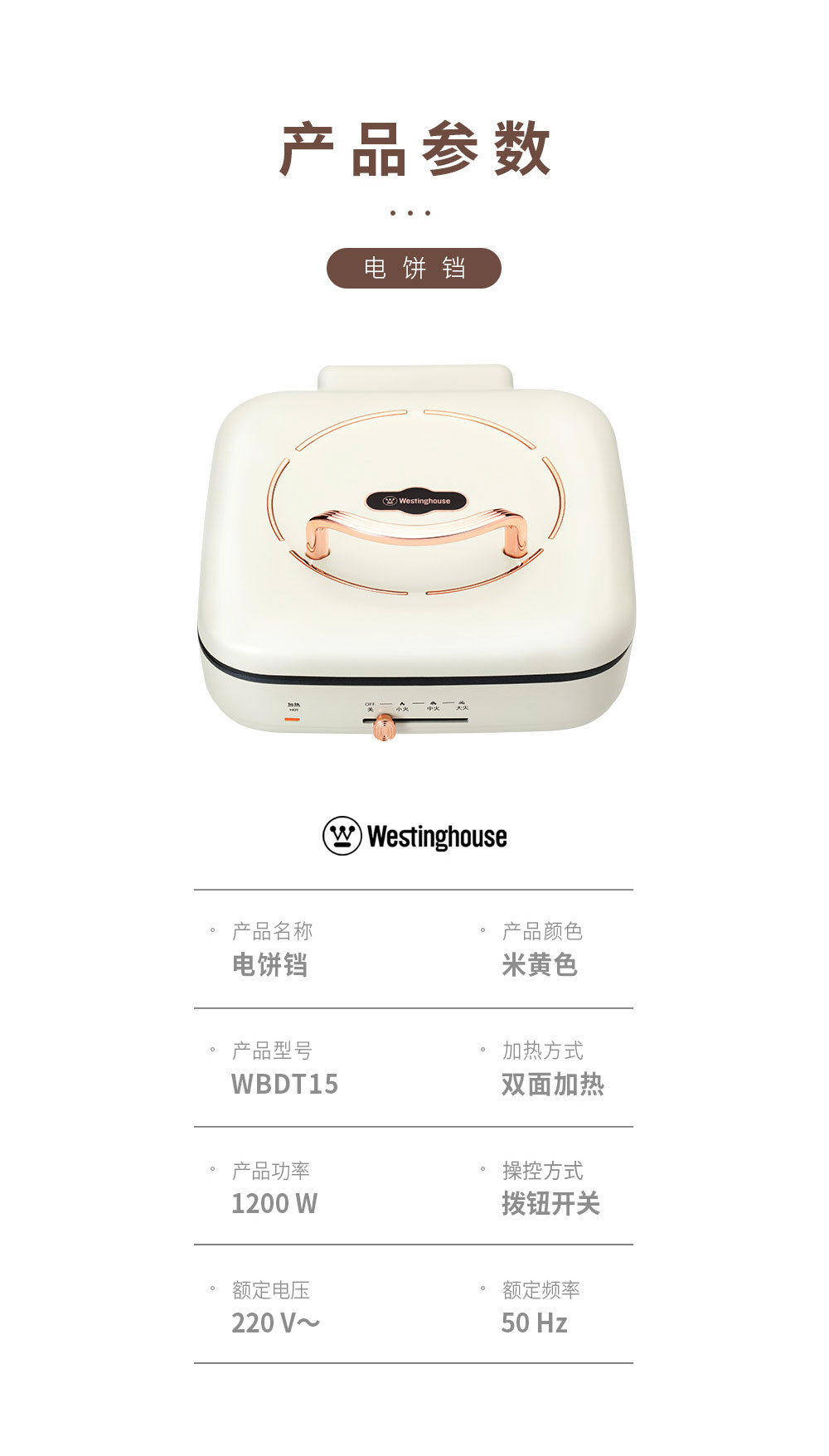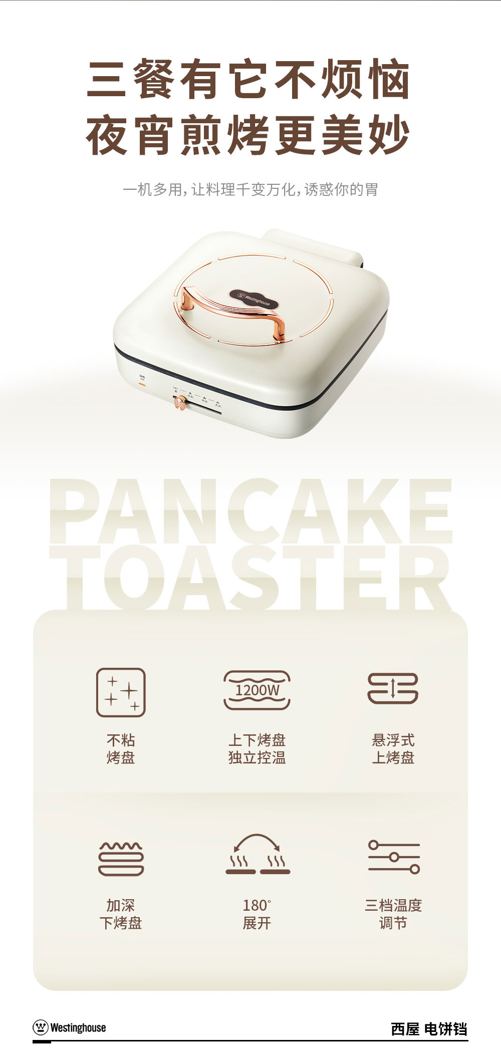【西屋】电饼铛 普区包邮 方型深烤盘大空间大容量满足烹饪厚度需求 WBDT15