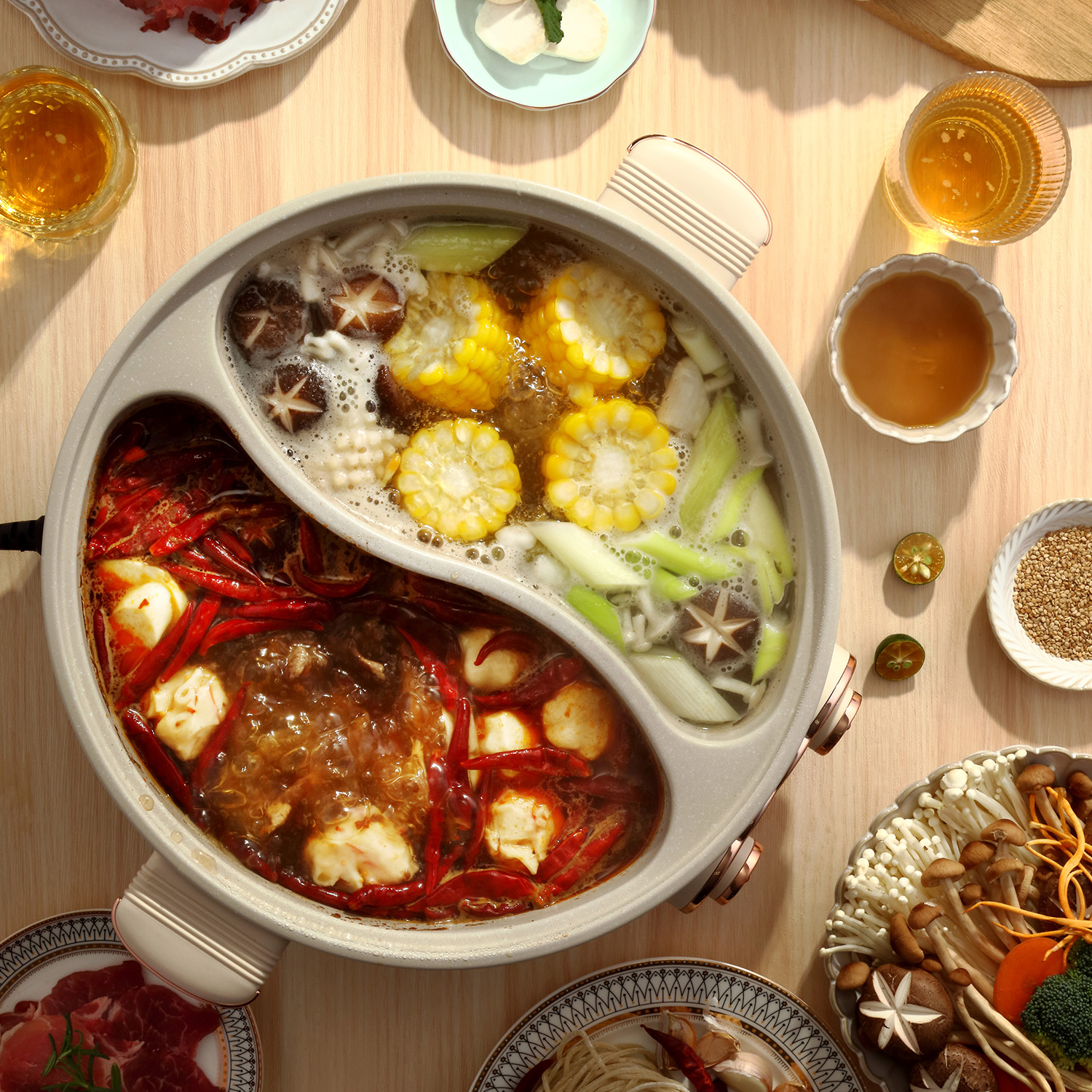 【西屋】电火锅 普区包邮 一锅煮两味 双味鸳鸯火锅涮兼顾不同口味 涮煮焖炖煎一锅多用 6L大容量 WHG6A