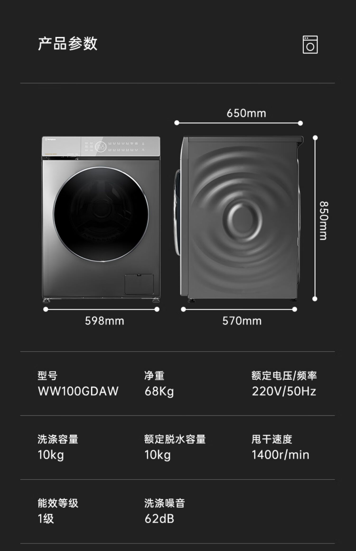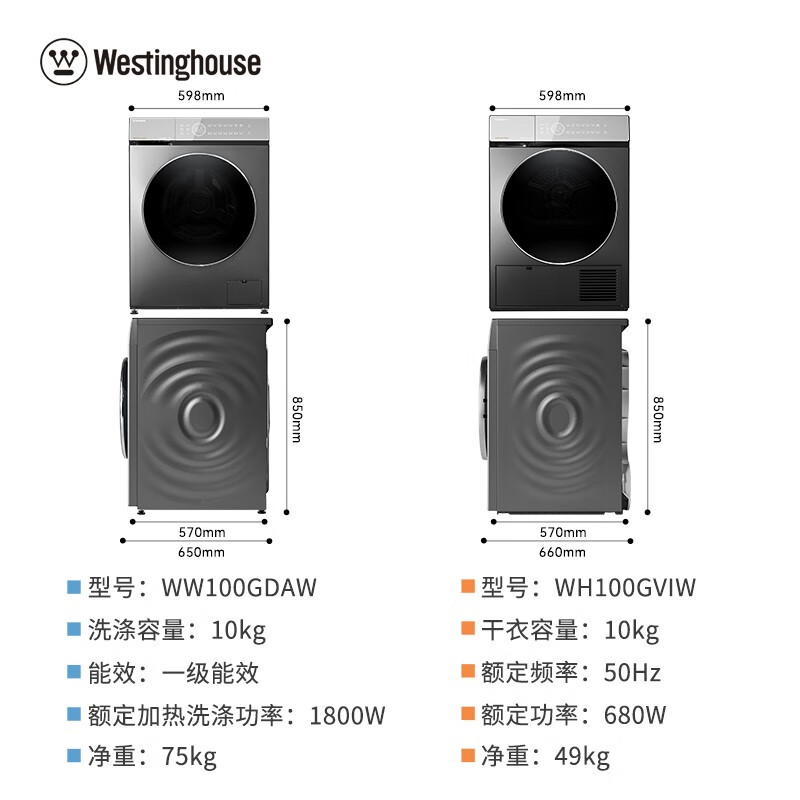 西屋曼哈顿10+10洗烘套装 10kg全自动滚筒洗衣机+10kg双变频热泵烘干机 WW100GDAW钦金灰+WH100GVIW钦金灰