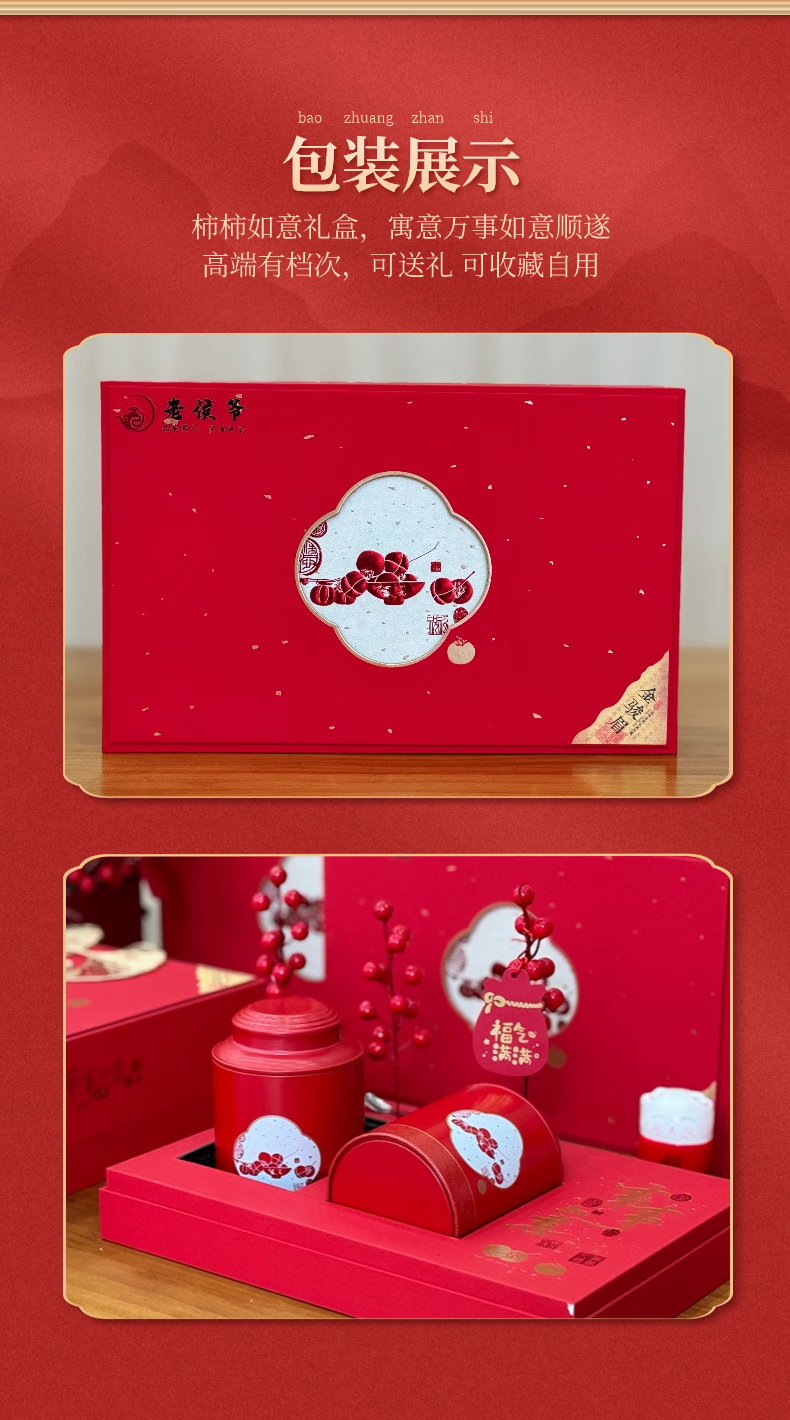 老侯爷老侯爷柿柿如意系列茶叶【正山小种250克/金骏眉250克/大红袍200克/武夷肉桂200克/铁观音250克/茶化石(碎银化石糯香普洱)500克】多款选择