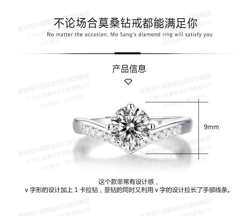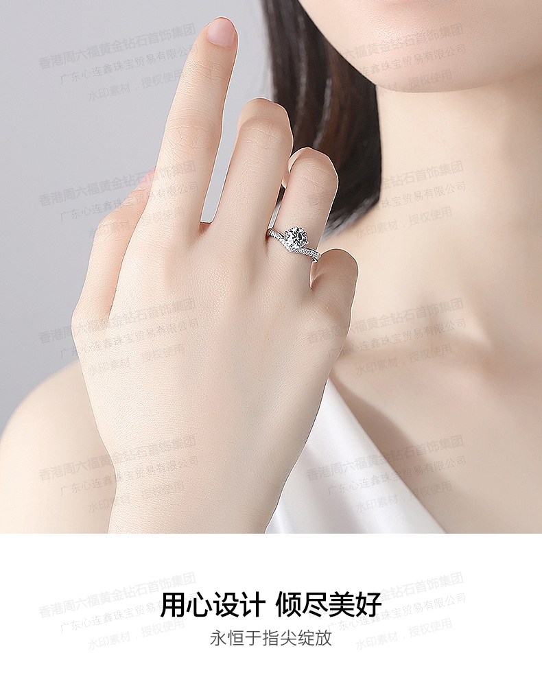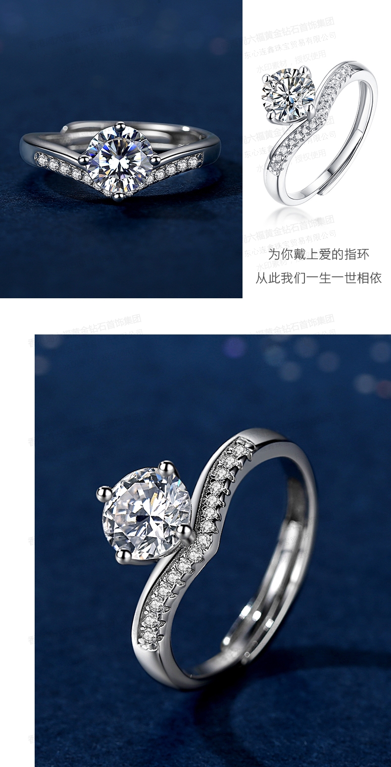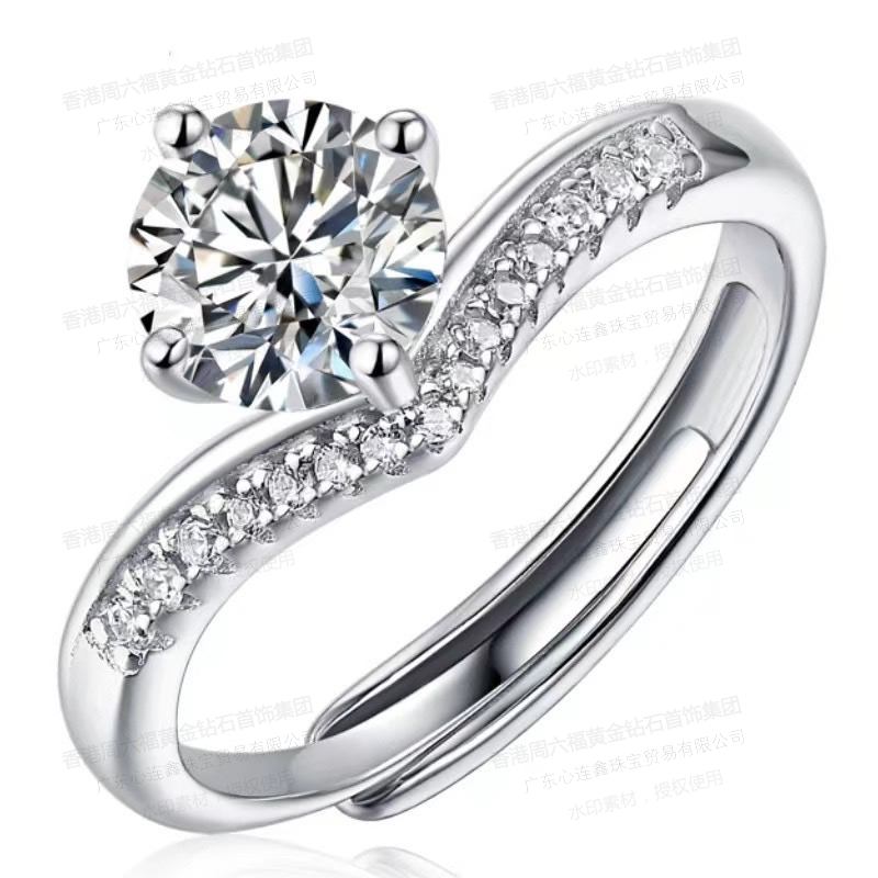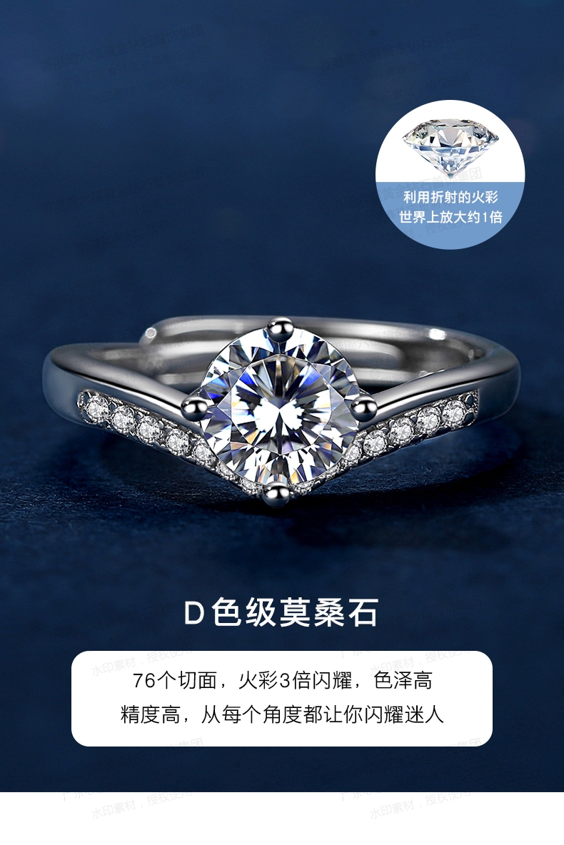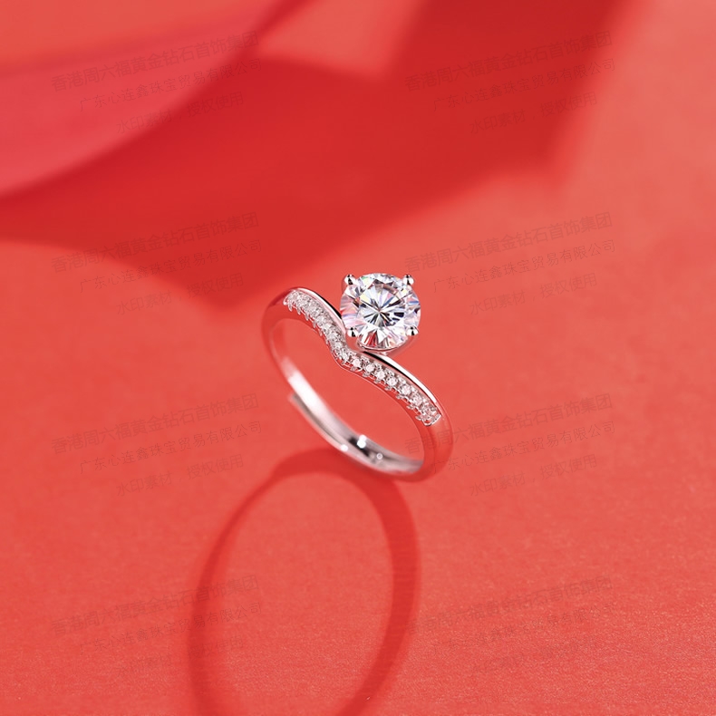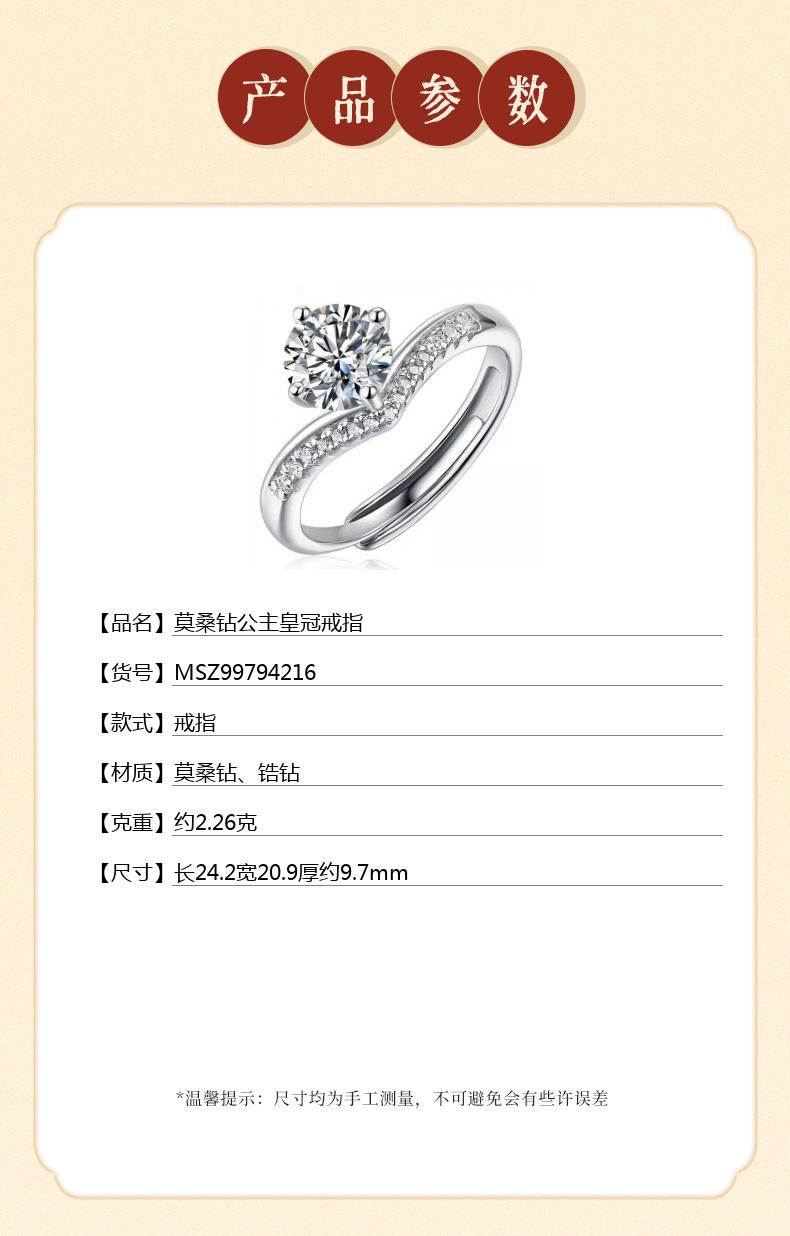 香港周六福SHIGEFUKU黄金钻石首饰莫桑钻公主皇冠戒指-可调节圈口【每证一品】
