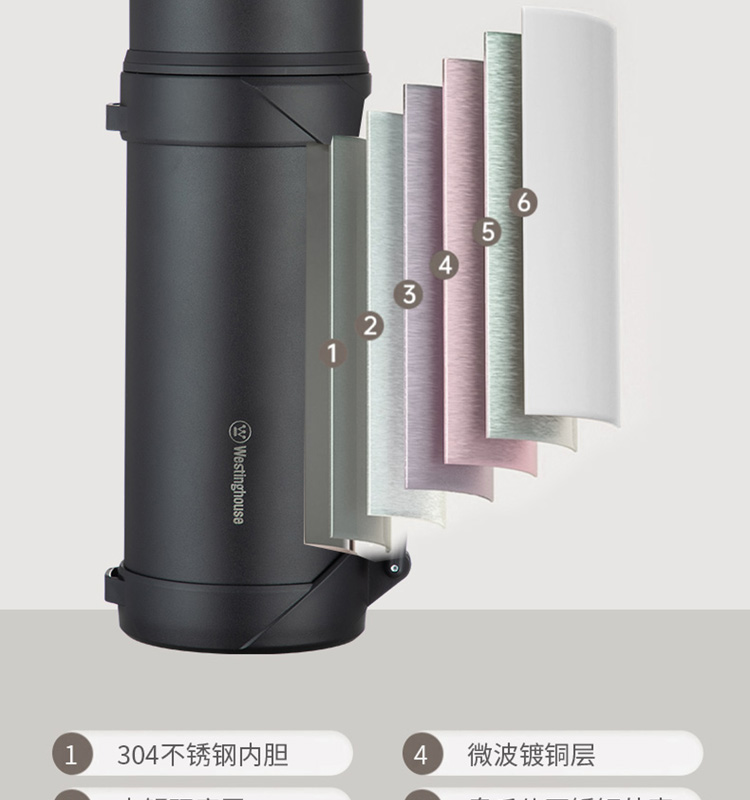 西屋 Westinghouse 睿逸随行保温壶 旅行壶不锈钢大容量水壶 户外保温保冷水壶WB1200-BK 精美彩盒装