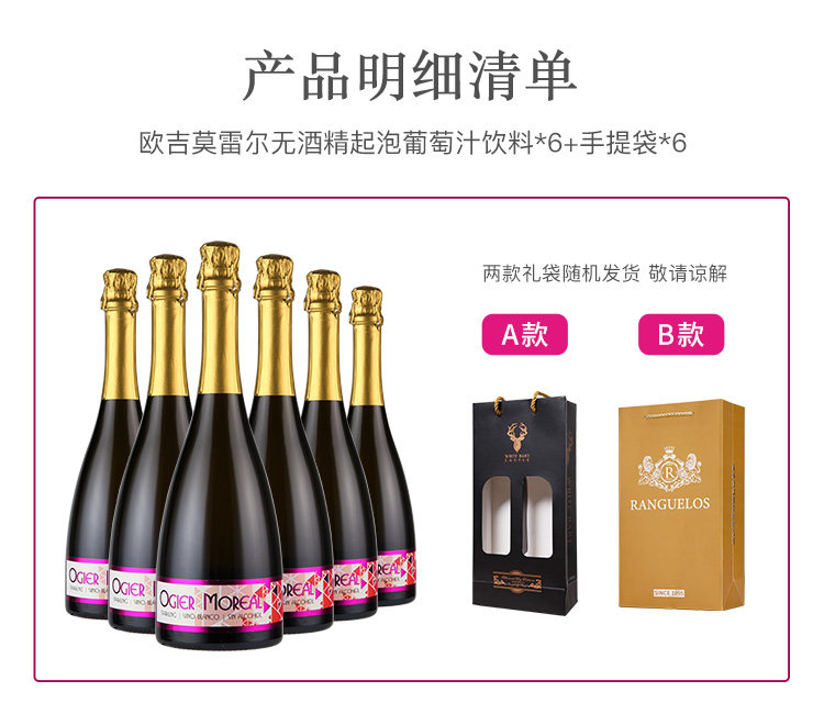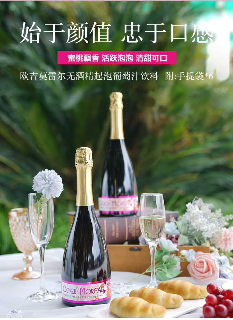 瑾瑜白鹿堡红酒欧吉莫雷尔无酒精0度起泡葡萄汁饮料750ml*6瓶