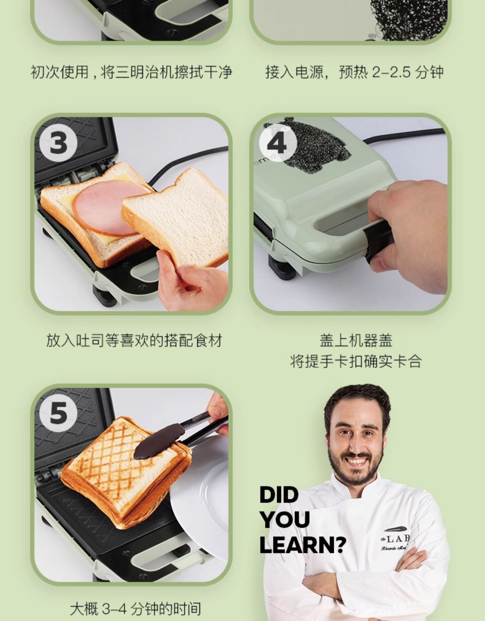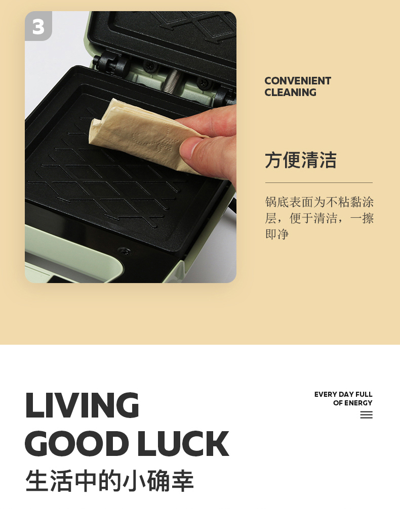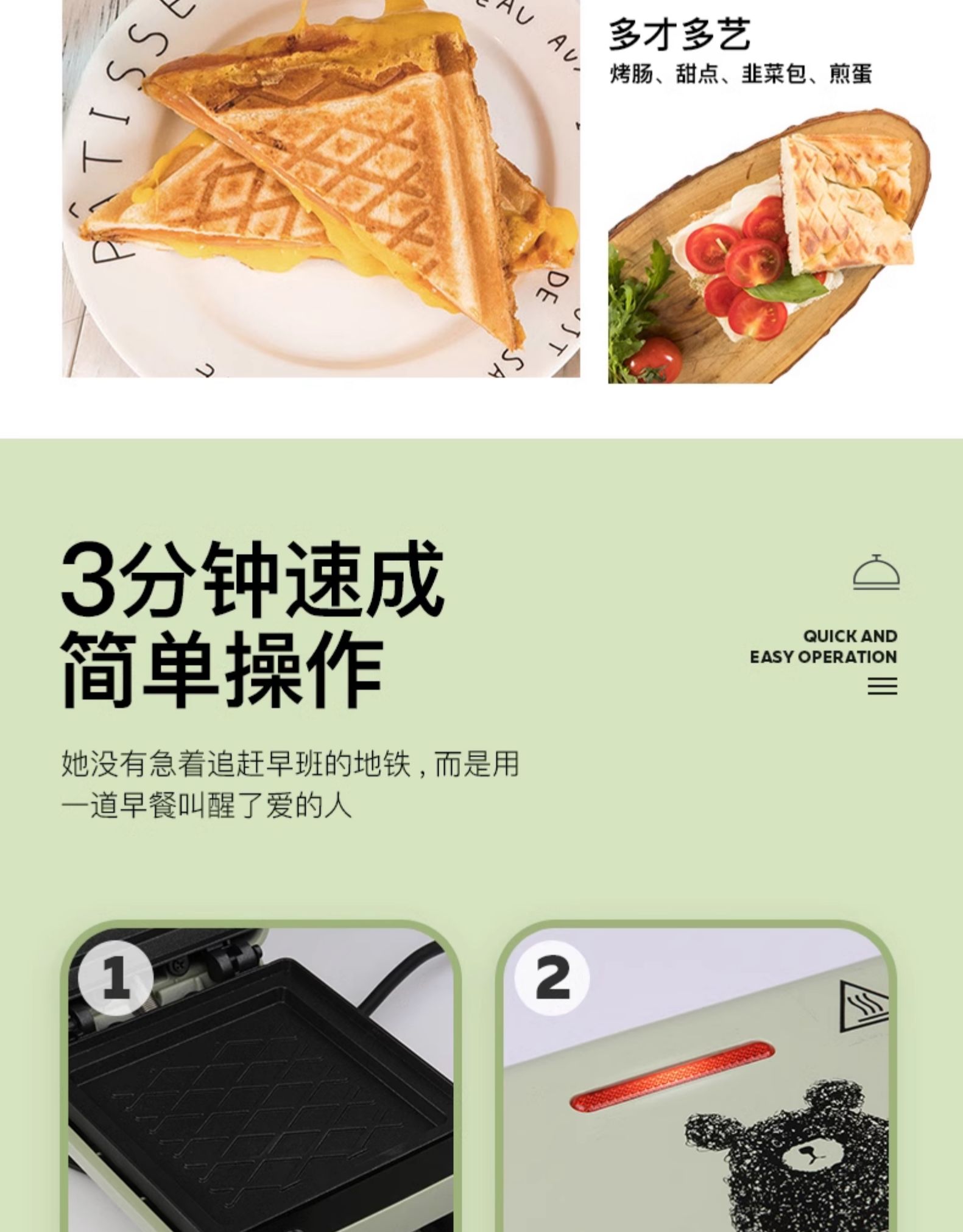 昂特ERNTE三明治早餐机轻食机家用多功能面包烤吐司神器三文治机MC-1801(G)